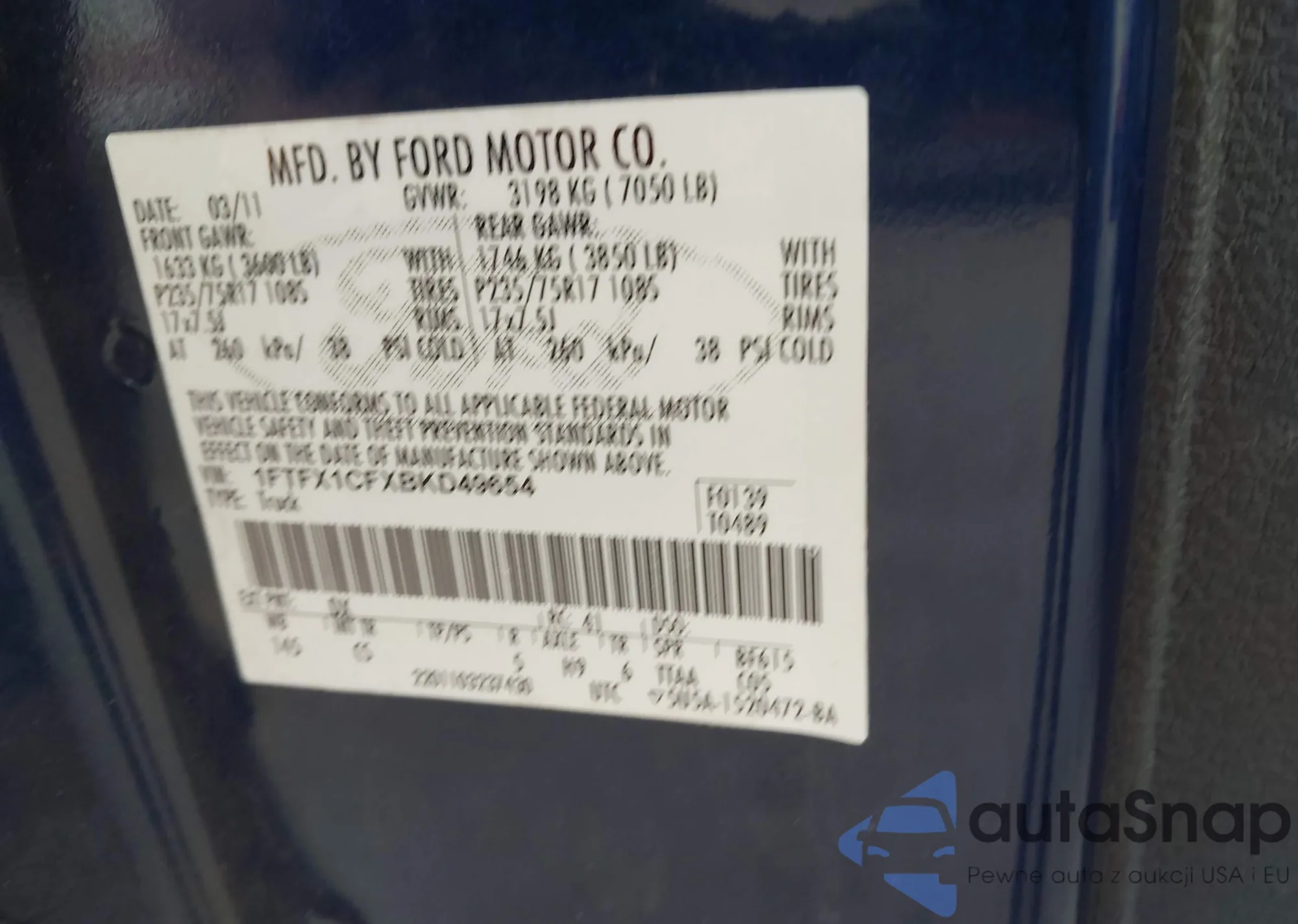 LOT: 43978028 VIN: 1FTFX1CFXBKD49654
