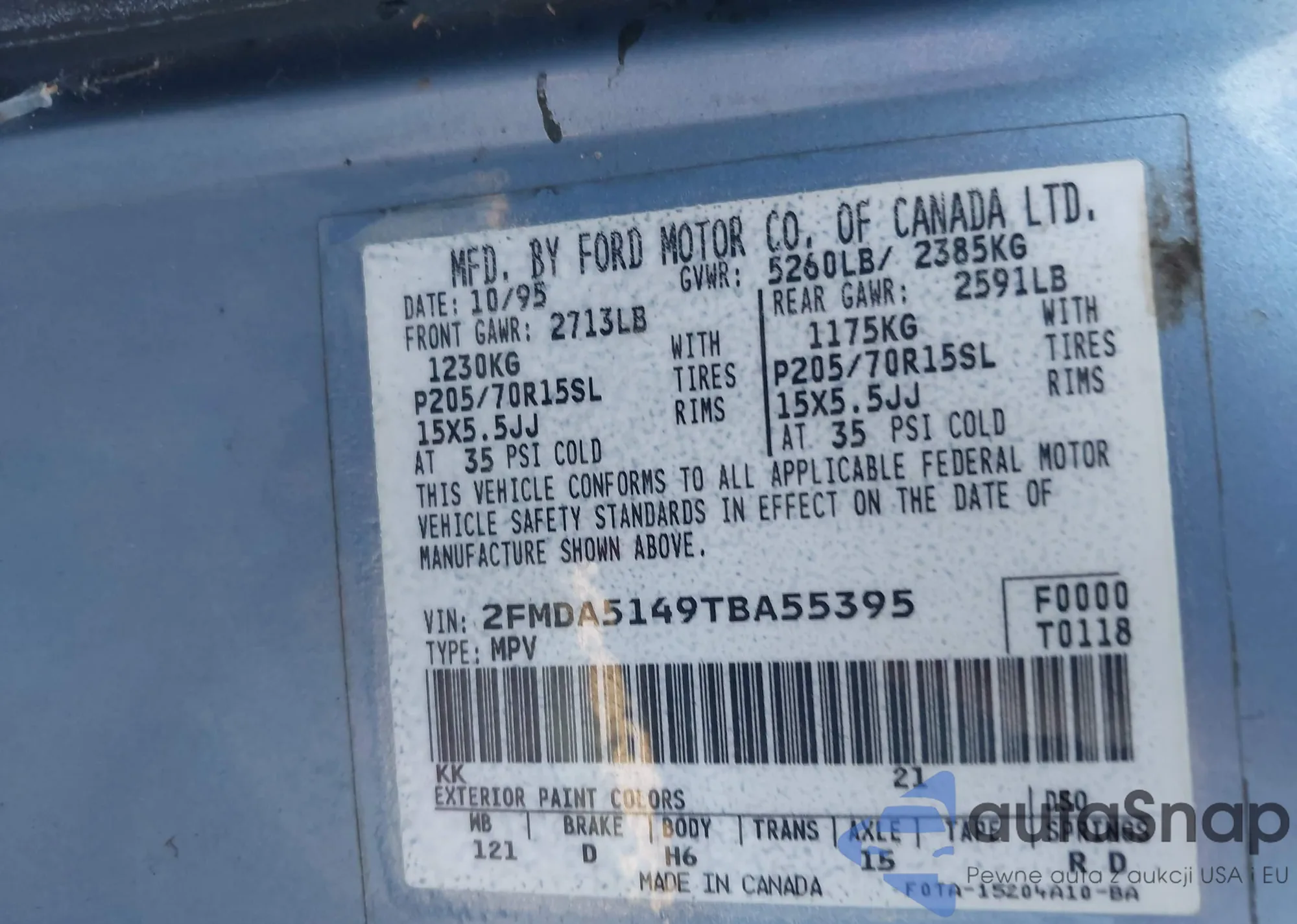 LOT: 43991857 VIN: 2FMDA5149TBA55395