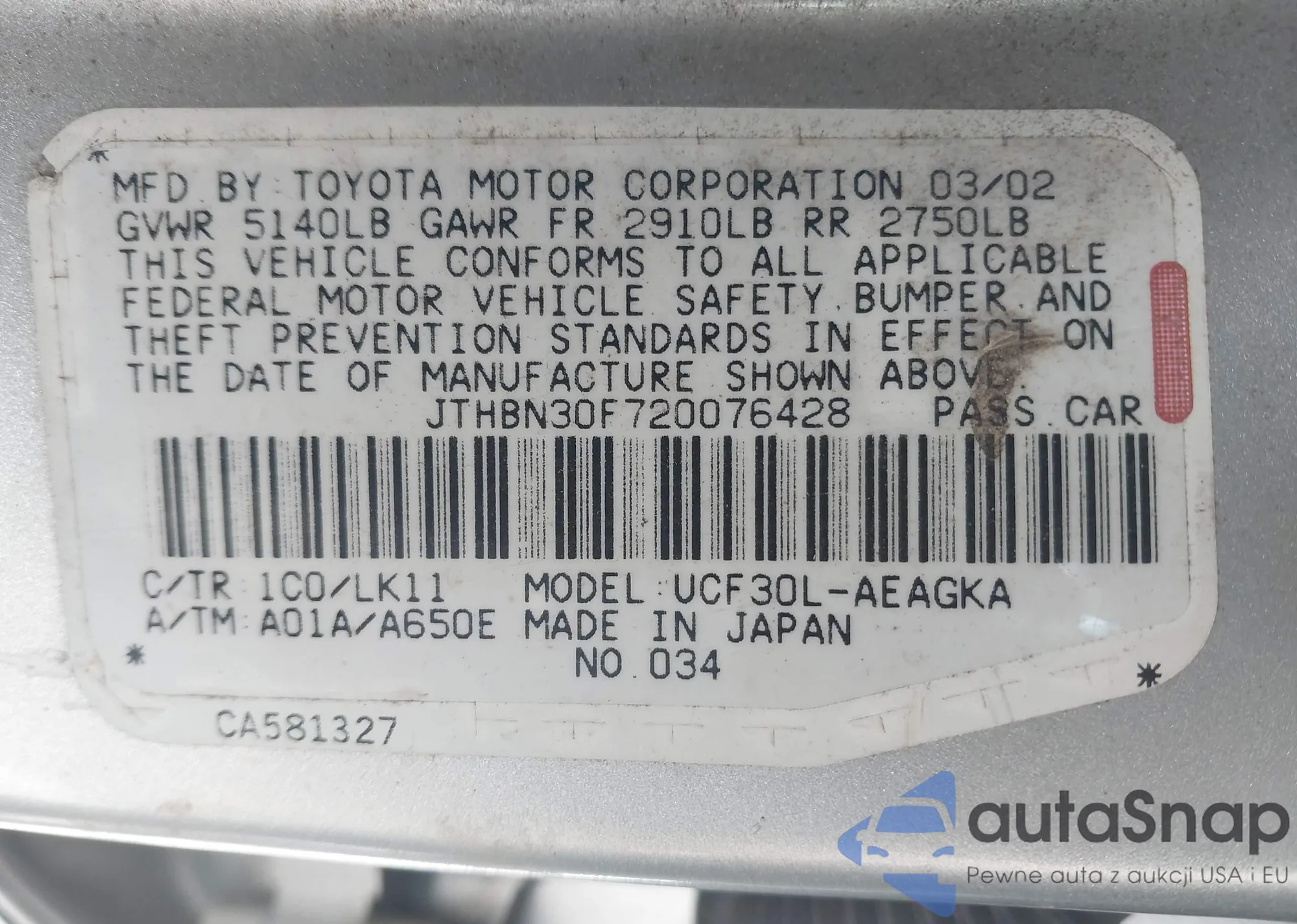 • VIN JTHBN30F720076428