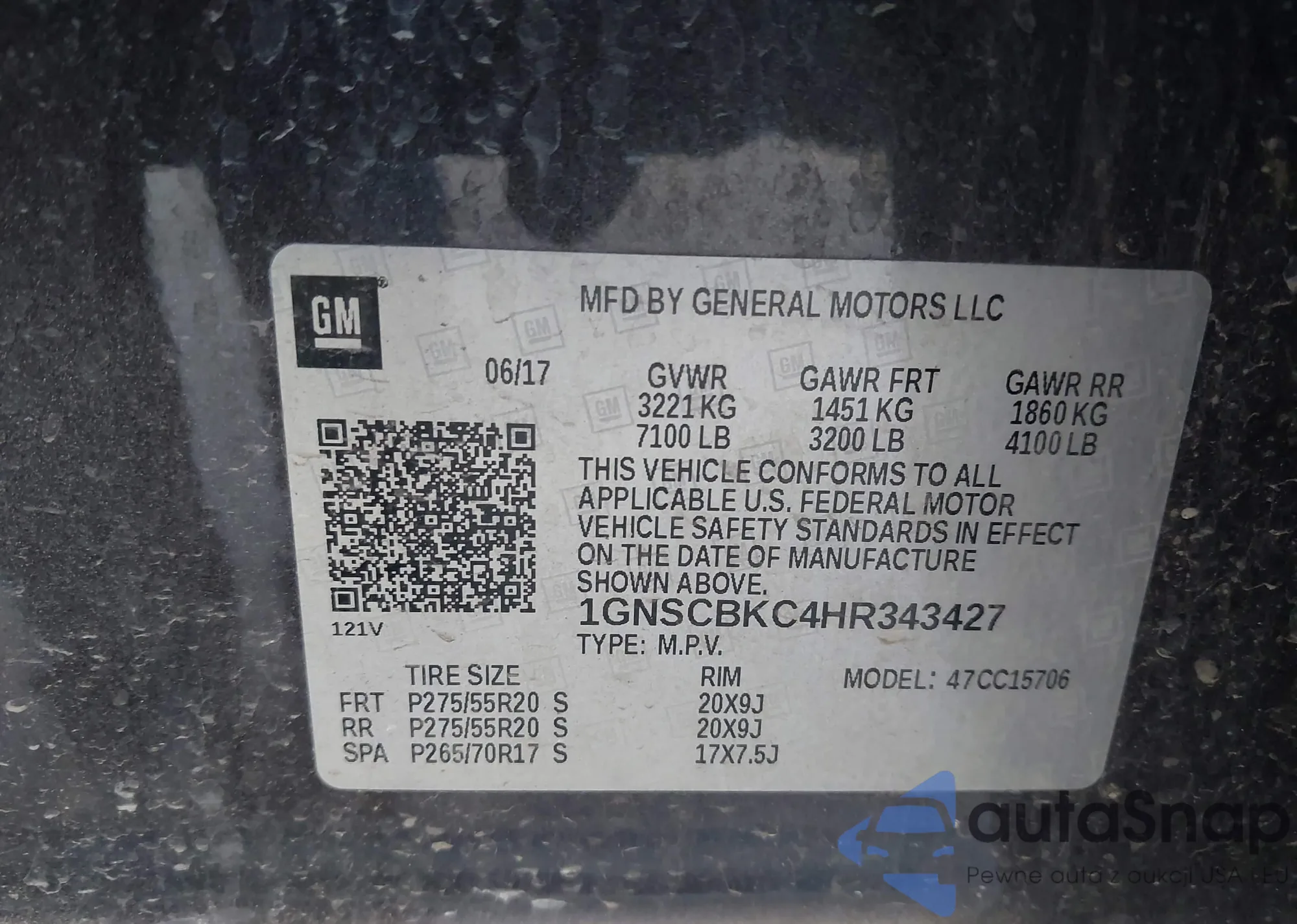 LOT: 43907938 VIN: 1GNSCBKC4HR343427