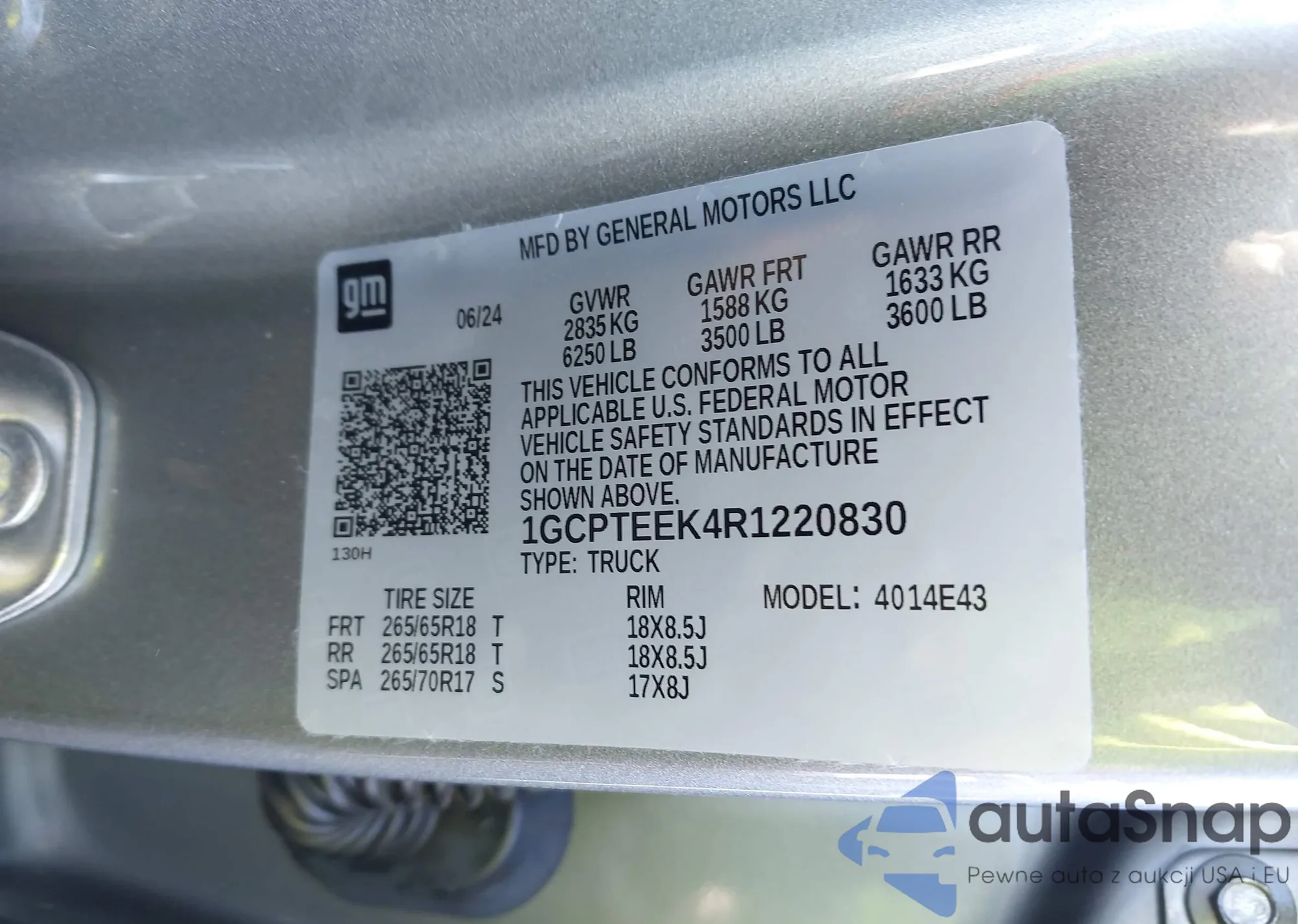 LOT: 43868100 VIN: 1GCPTEEK4R1220830