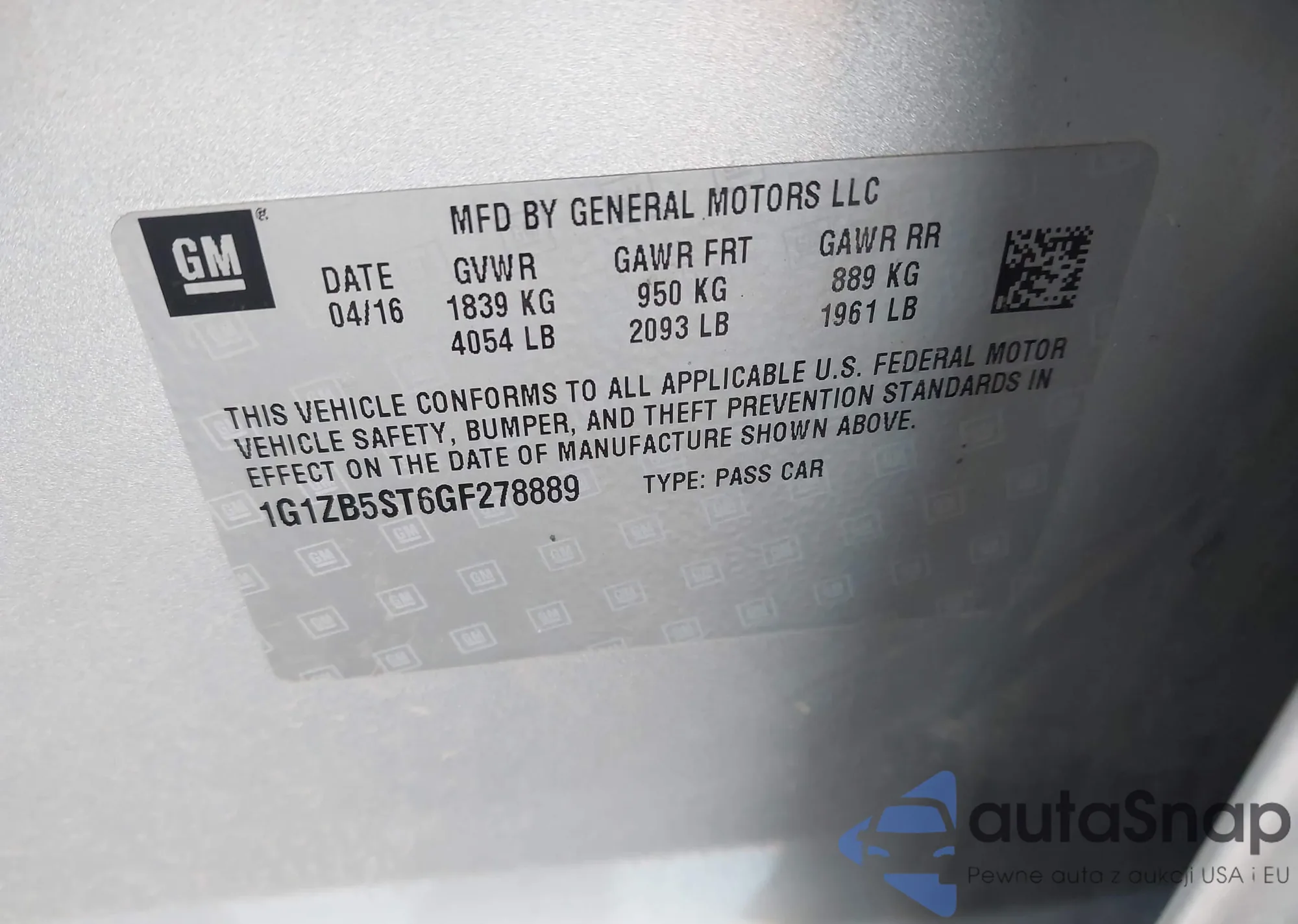 • VIN 1G1ZB5ST6GF278889