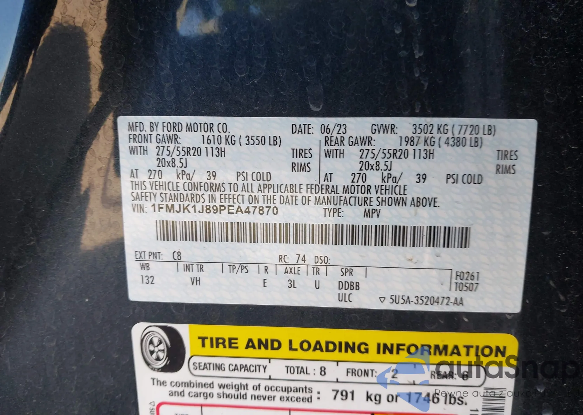 LOT: 42430830 VIN: 1FMJK1J89PEA47870
