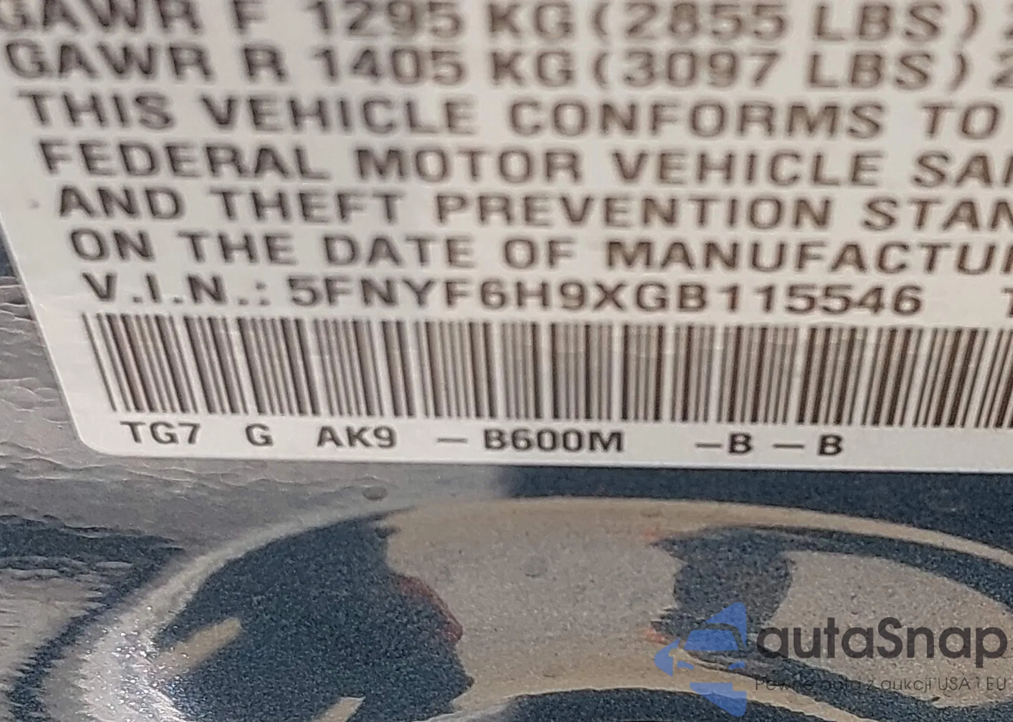 • VIN 5FNYF6H9XGB115546