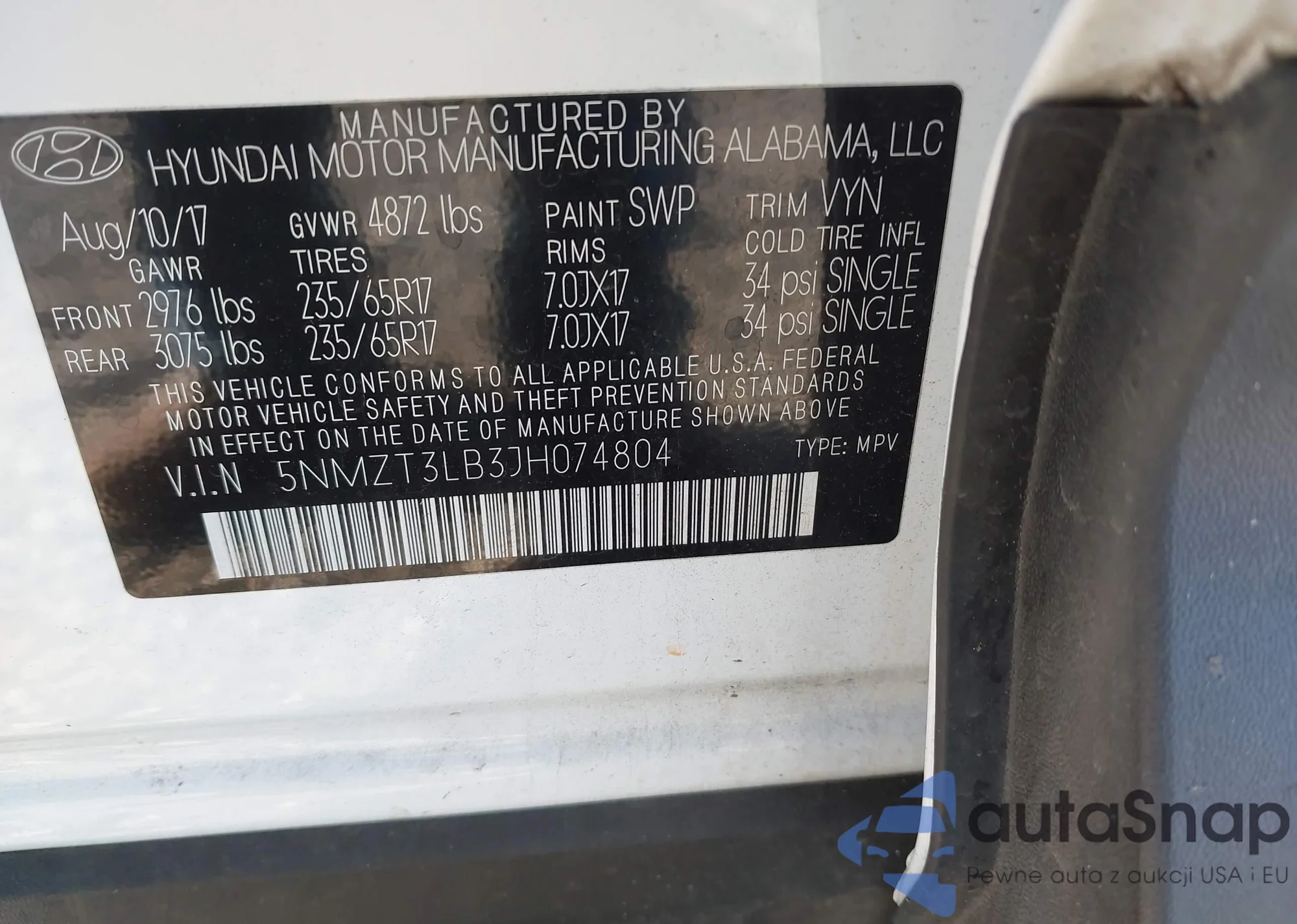 • VIN 5NMZT3LB3JH074804