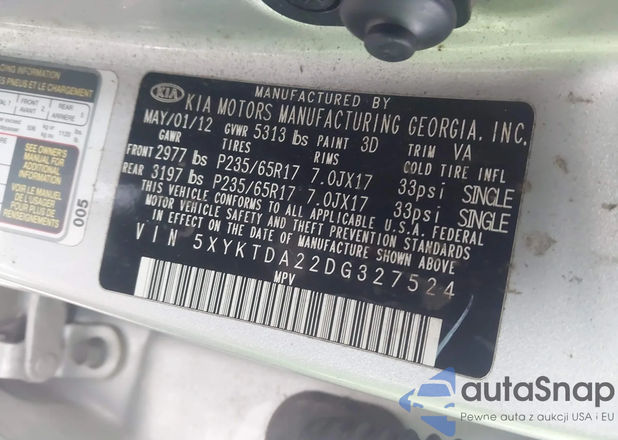 • VIN 5XYKTDA22DG327524