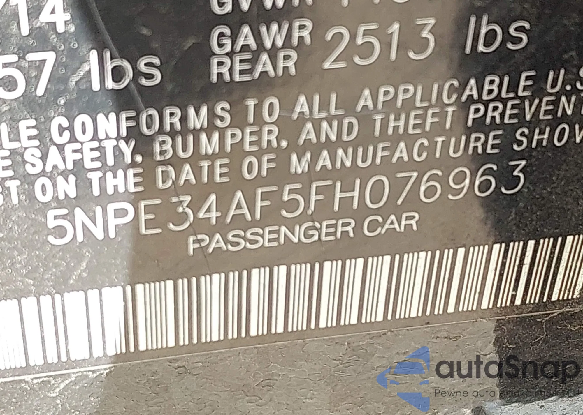 LOT: 43766180 VIN: 5NPE34AF5FH076963
