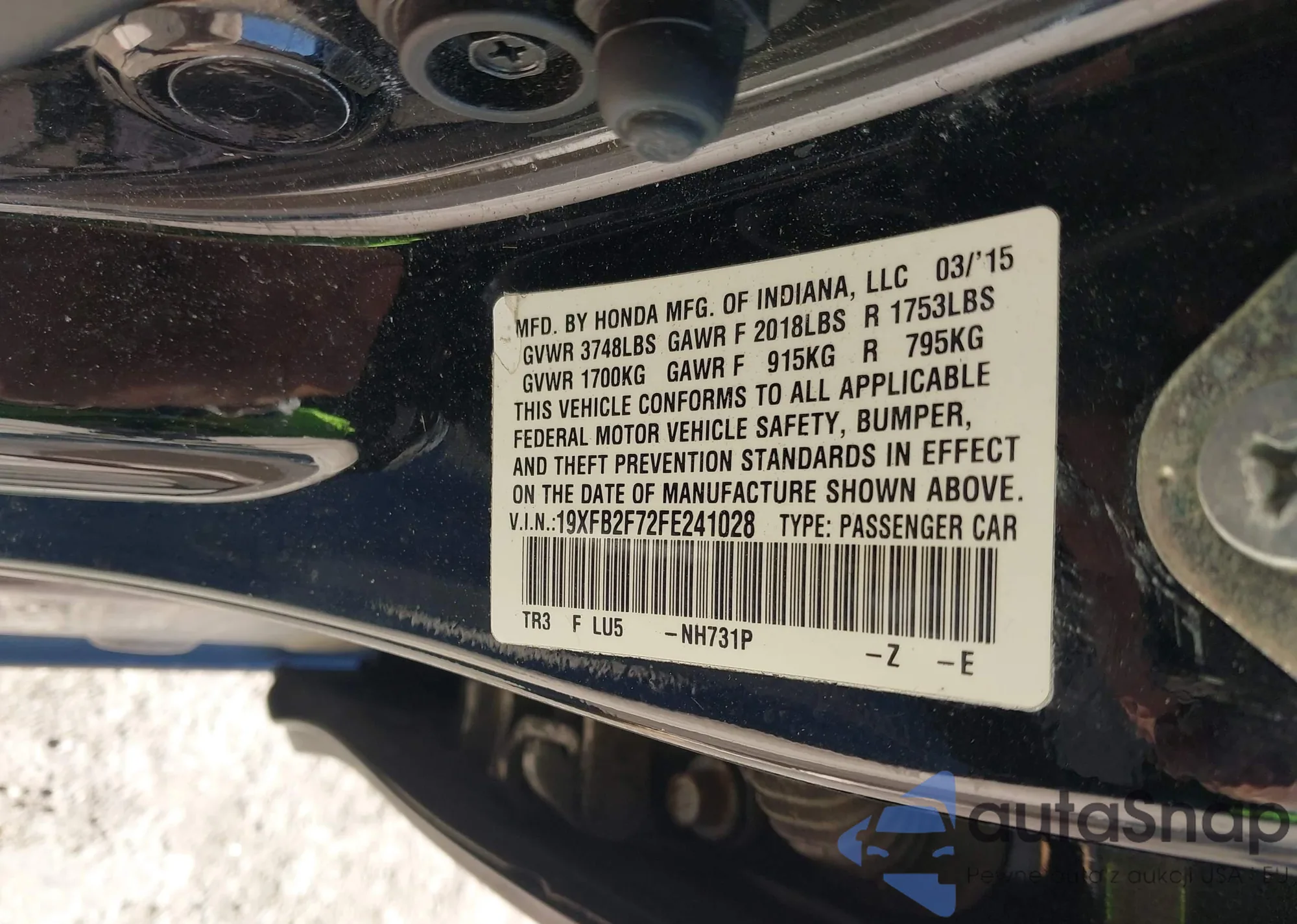 LOT: 43806028 VIN: 19XFB2F72FE241028