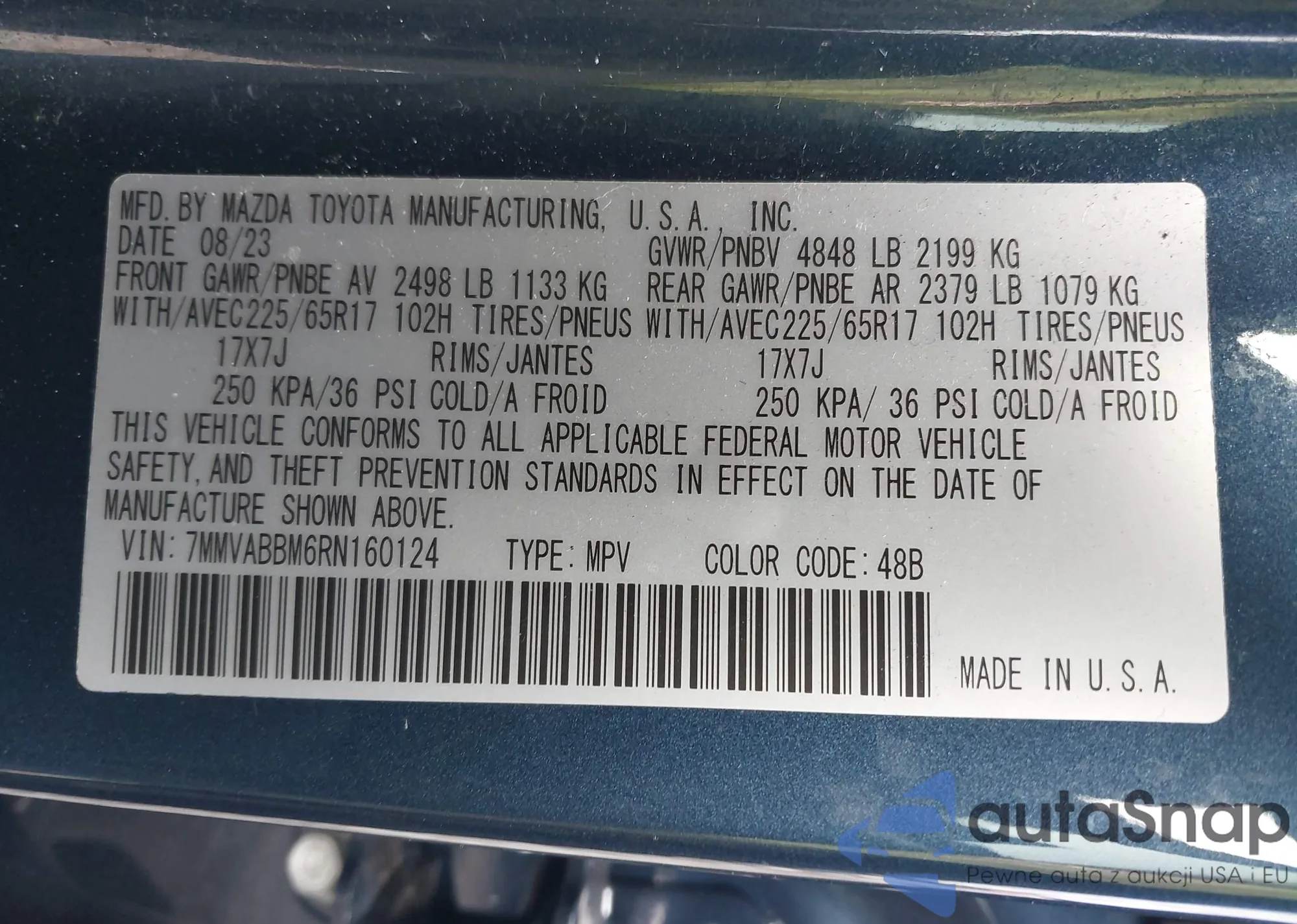 LOT: 43824379 VIN: 7MMVABBM6RN160124