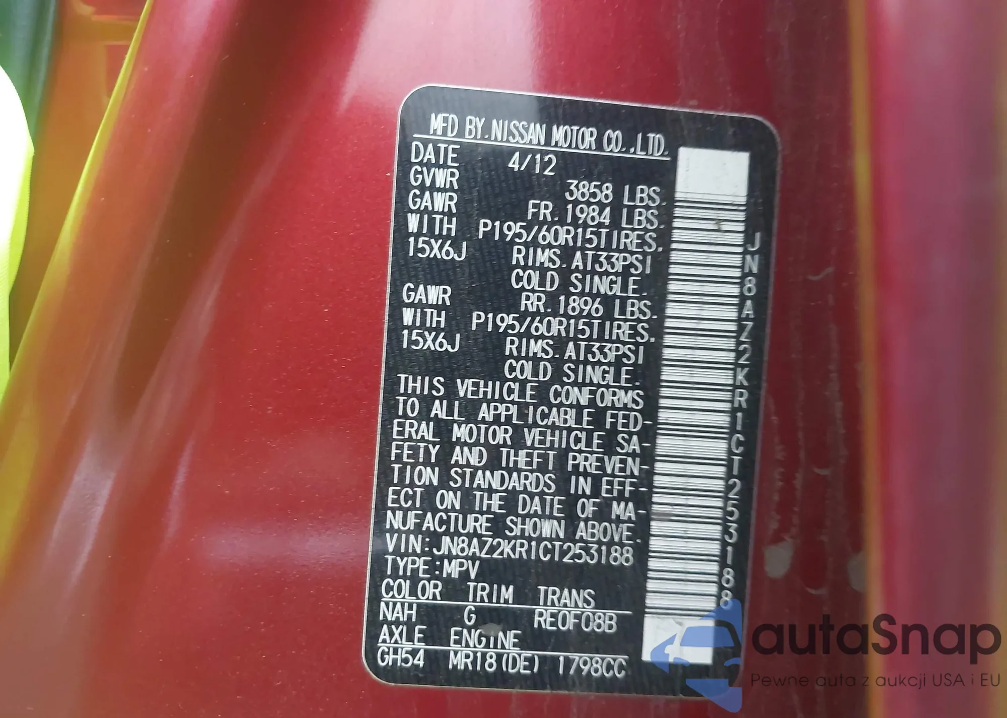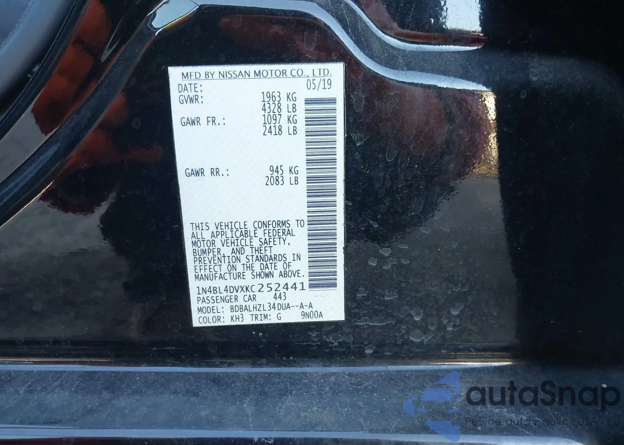 • VIN 1N4BL4DVXKC252441