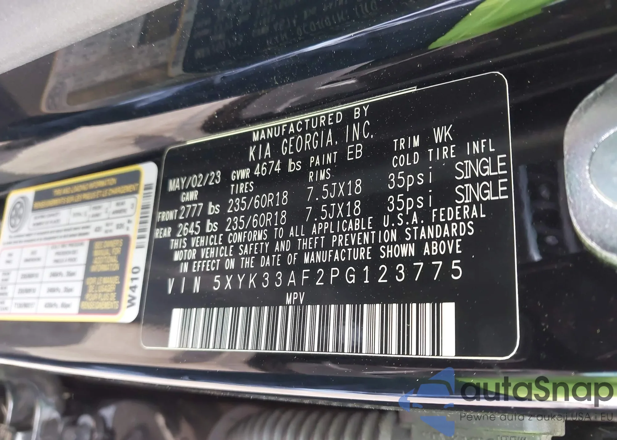 • VIN 5XYK33AF2PG123775