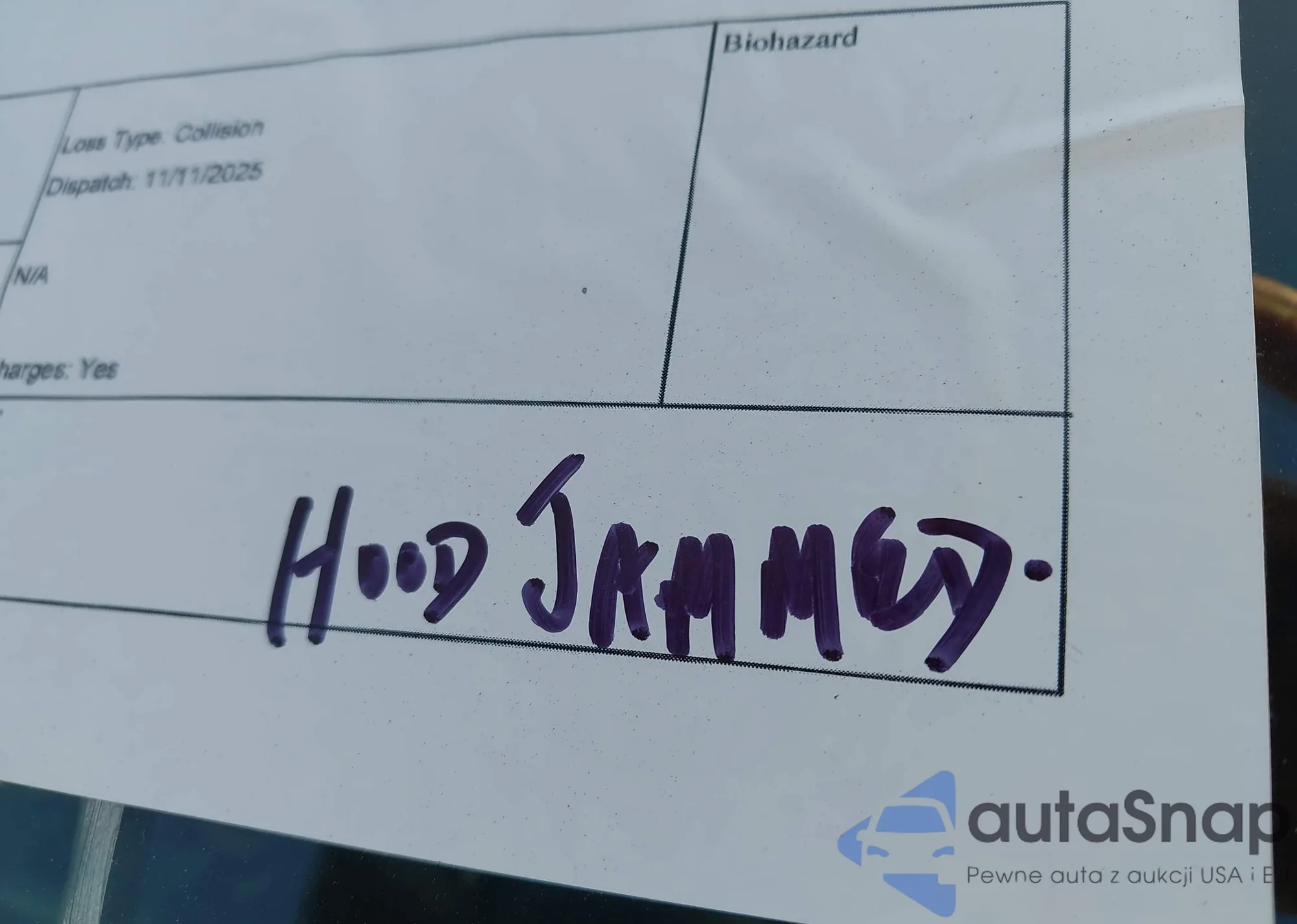 • Damage: Unknown