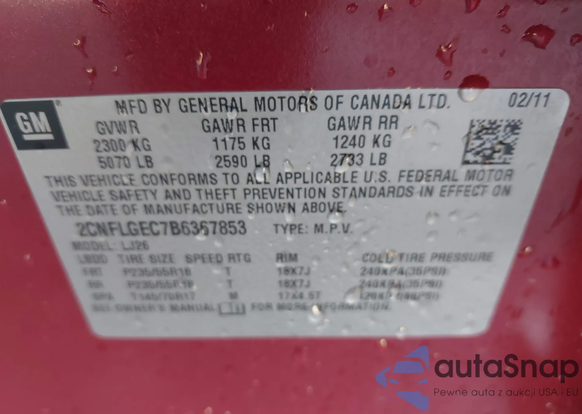 LOT: 43887572 VIN: 2CNFLGEC7B6367853