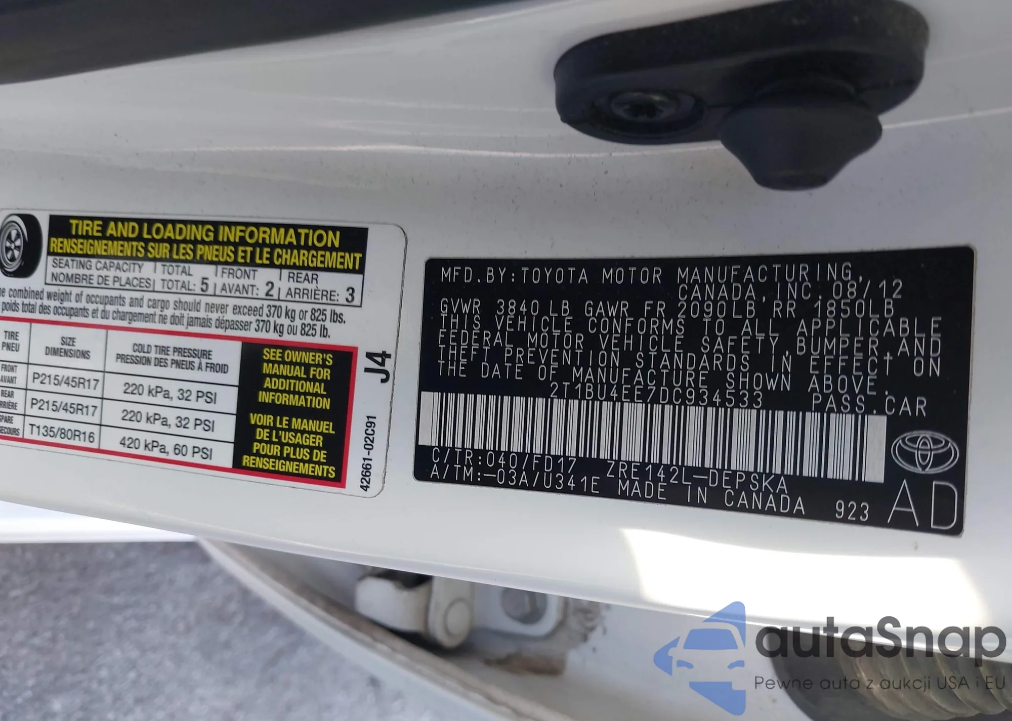 LOT: 43873277 VIN: JTDKDTB33D1540013