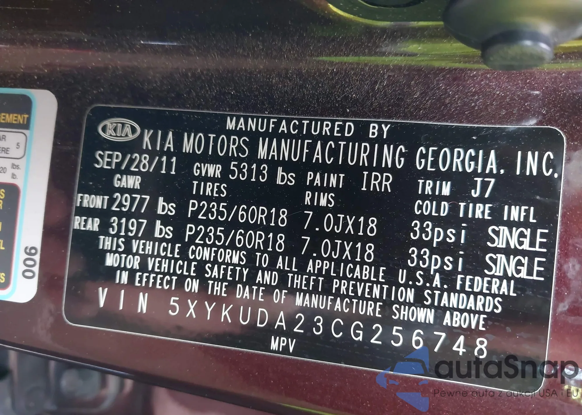 • VIN 5XYKUDA23CG256748