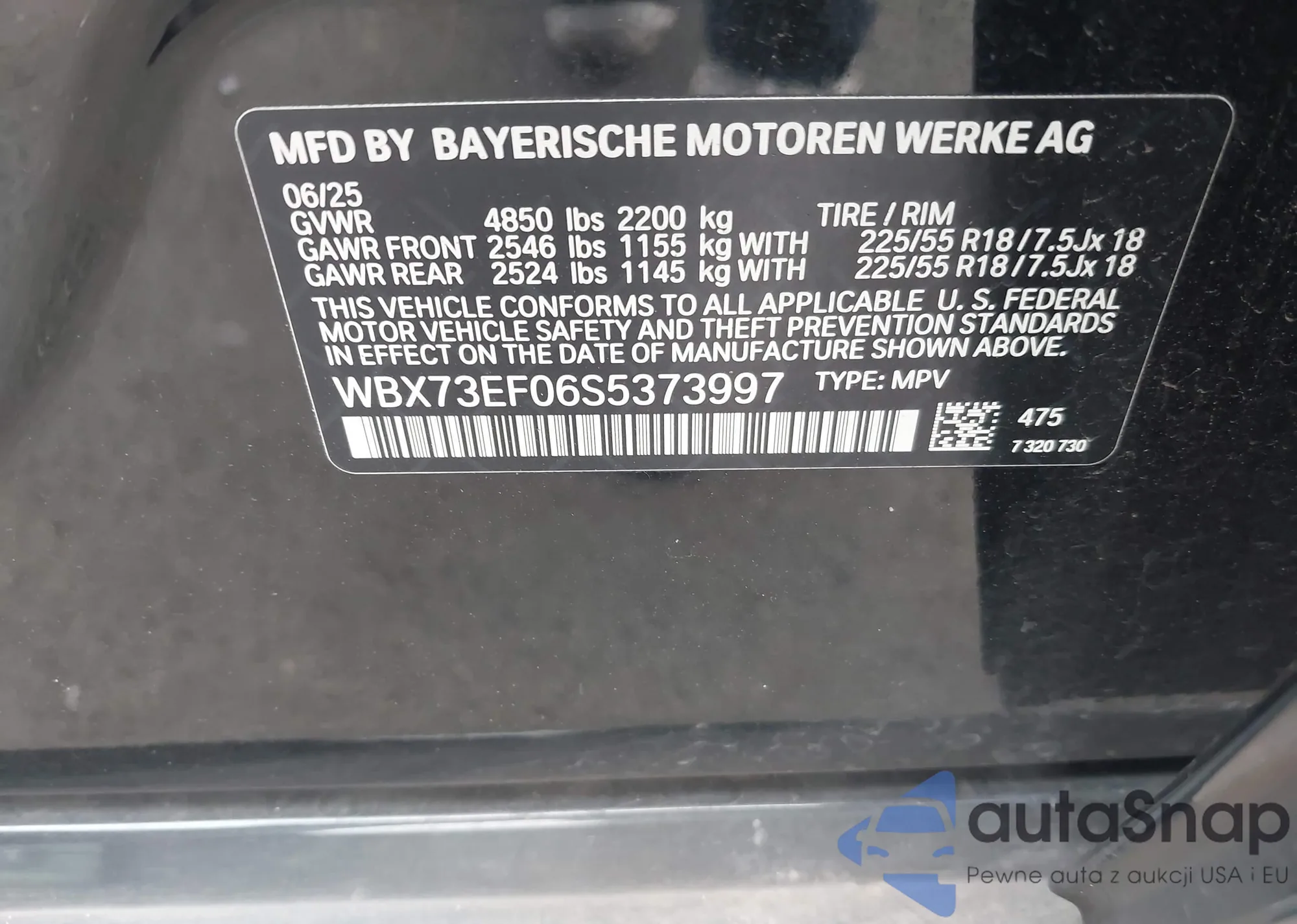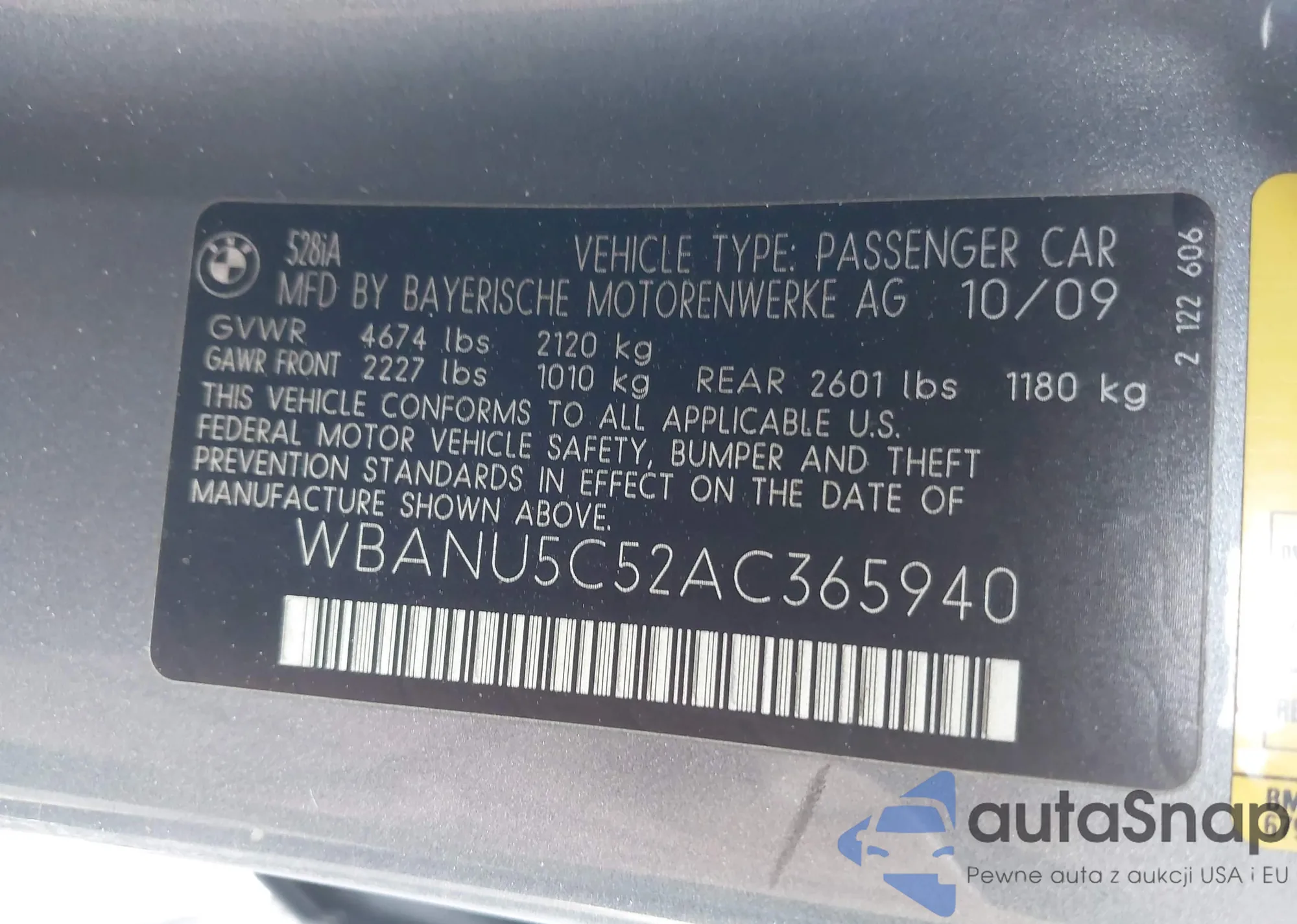 LOT: 44041357 VIN: WBAVC93517K031956