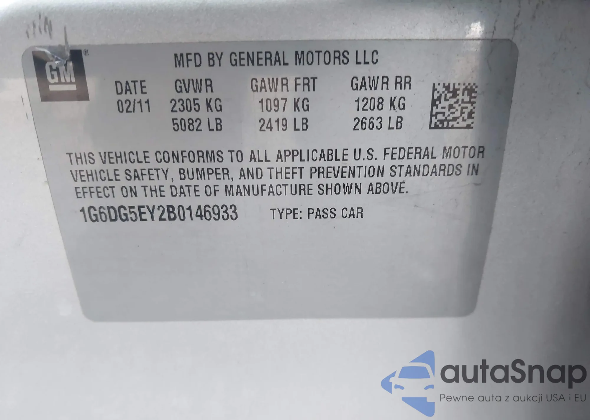 • VIN 1G6DG5EY2B0146933