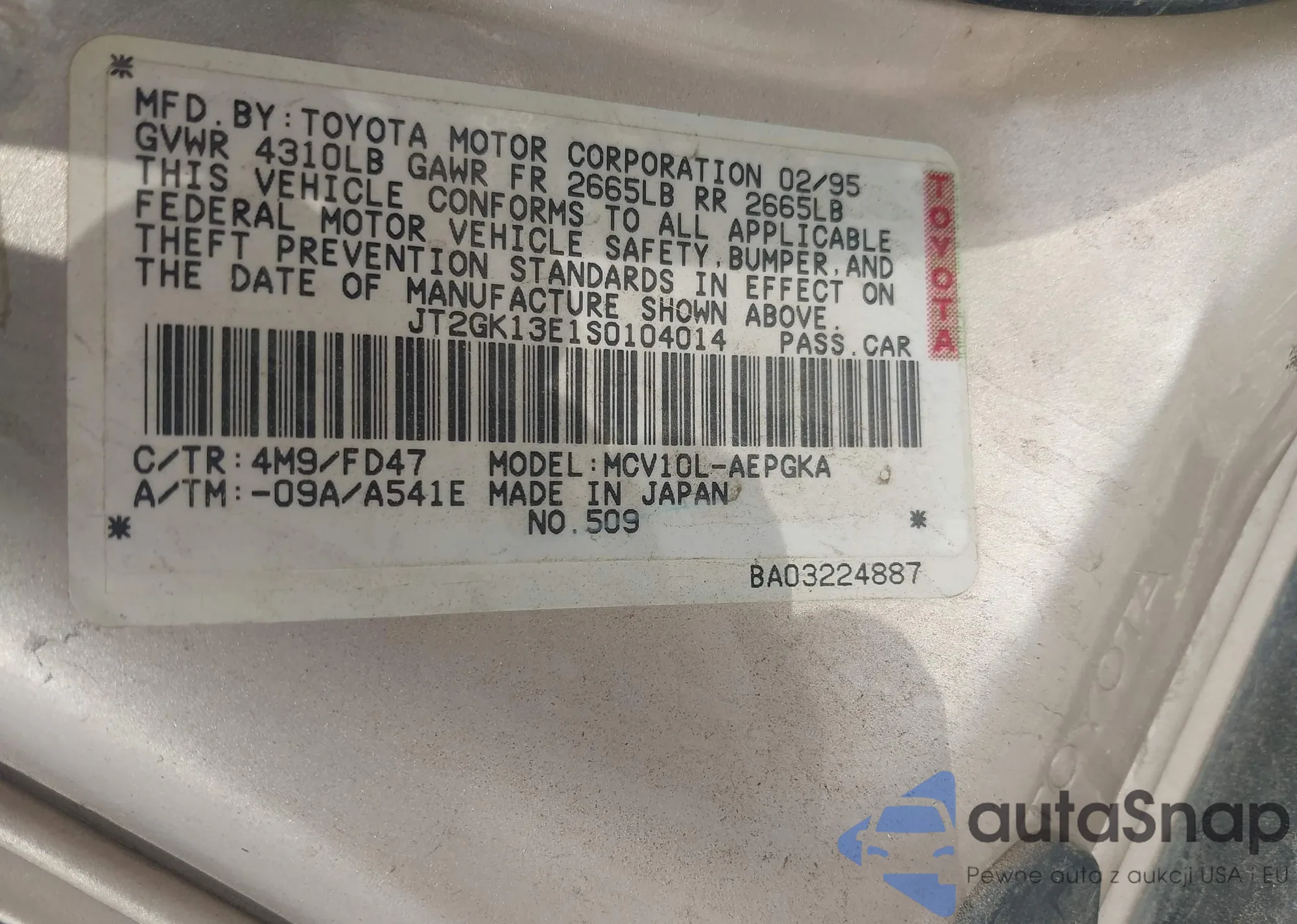 LOT: 43062903 VIN: JT2GK13E1S0104014