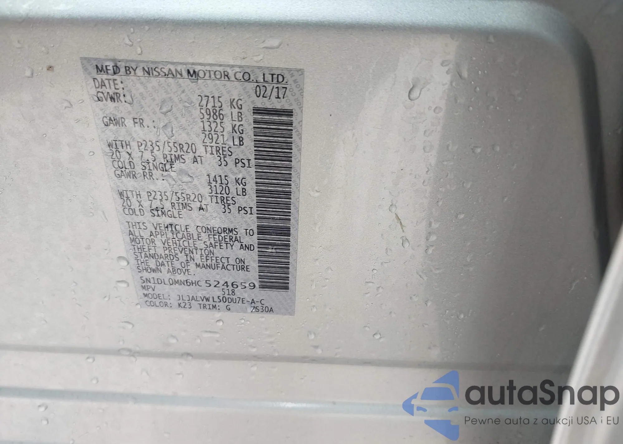 LOT: 43754918 VIN: JN8AZ1MU6EW414857
