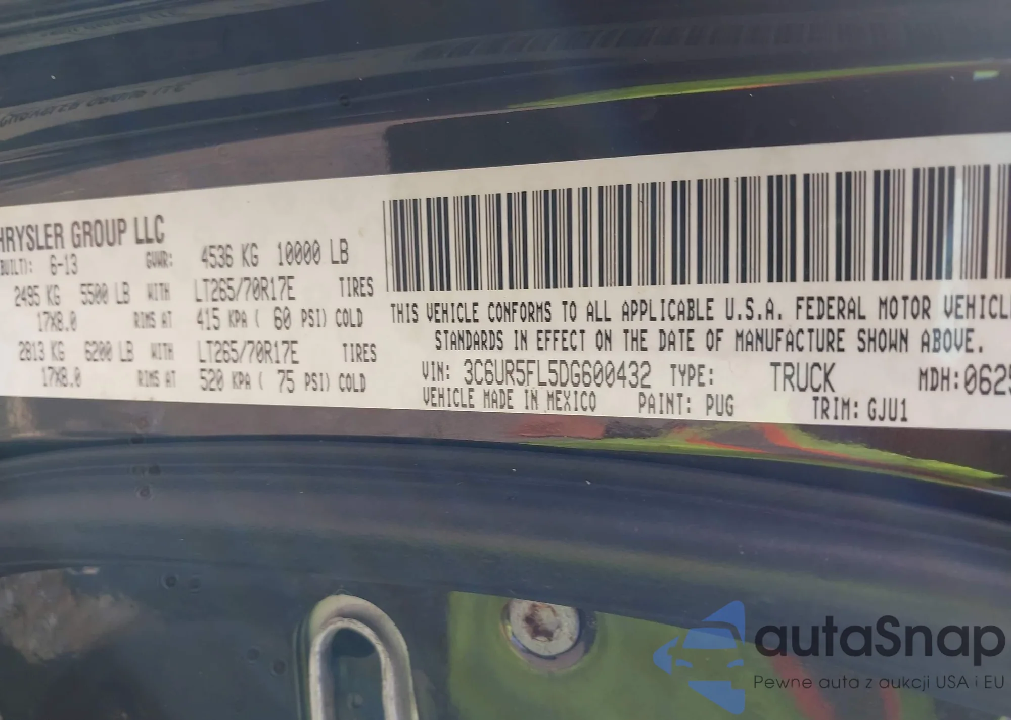 • VIN 3C6UR5FL5DG600432
