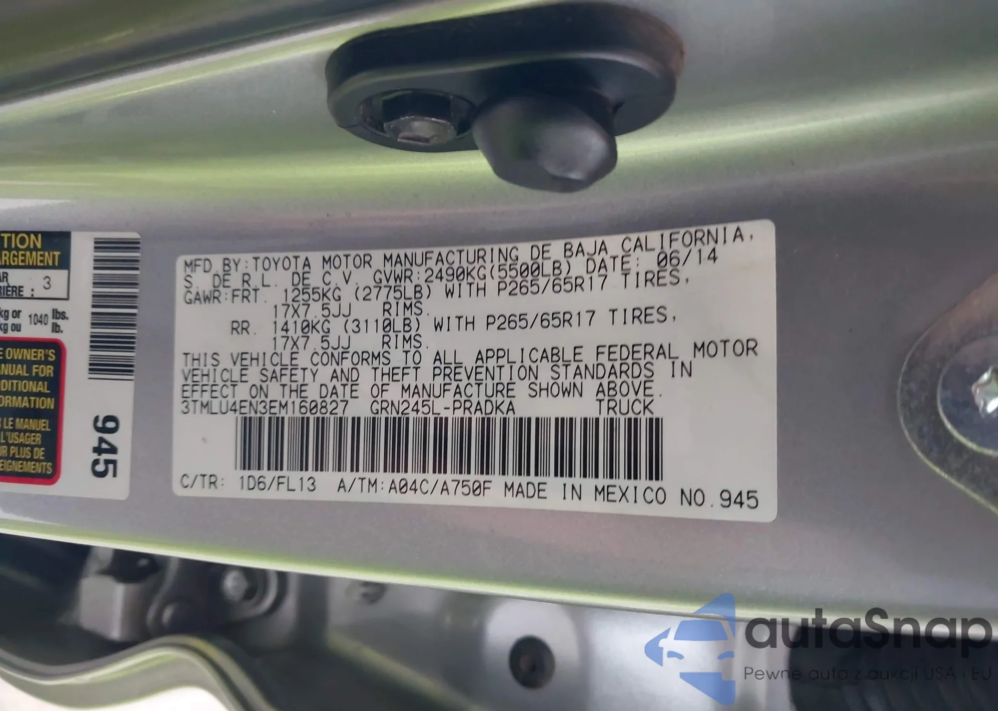 2014 Toyota Tacoma Base V6 from USA, damaged, VIN 3TMLU4EN3EM160827
