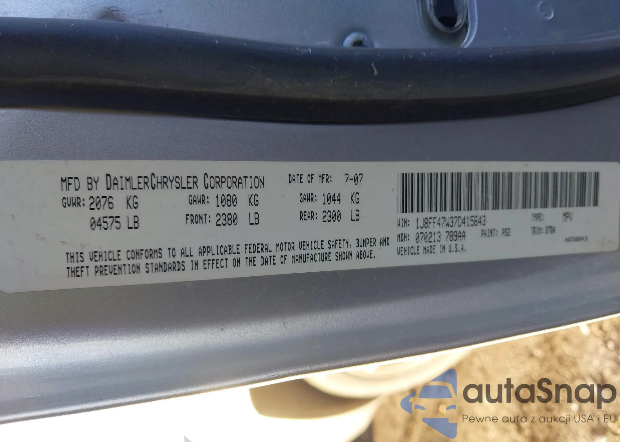 • VIN 1J8FF47W37D415643