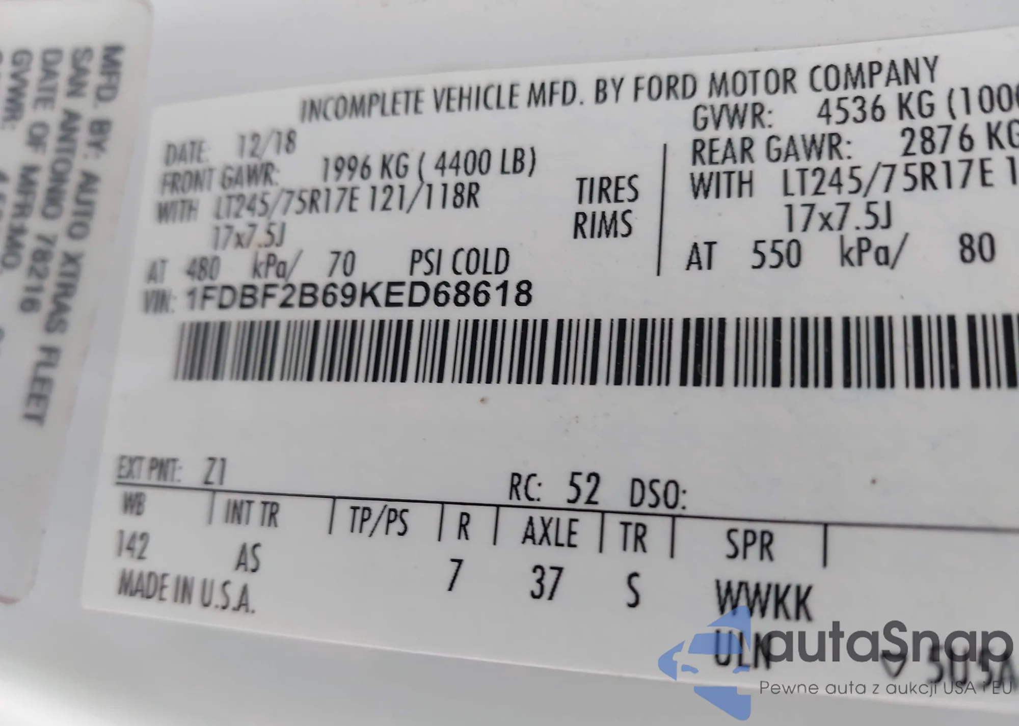 • VIN 1FDBF2B69KED68618