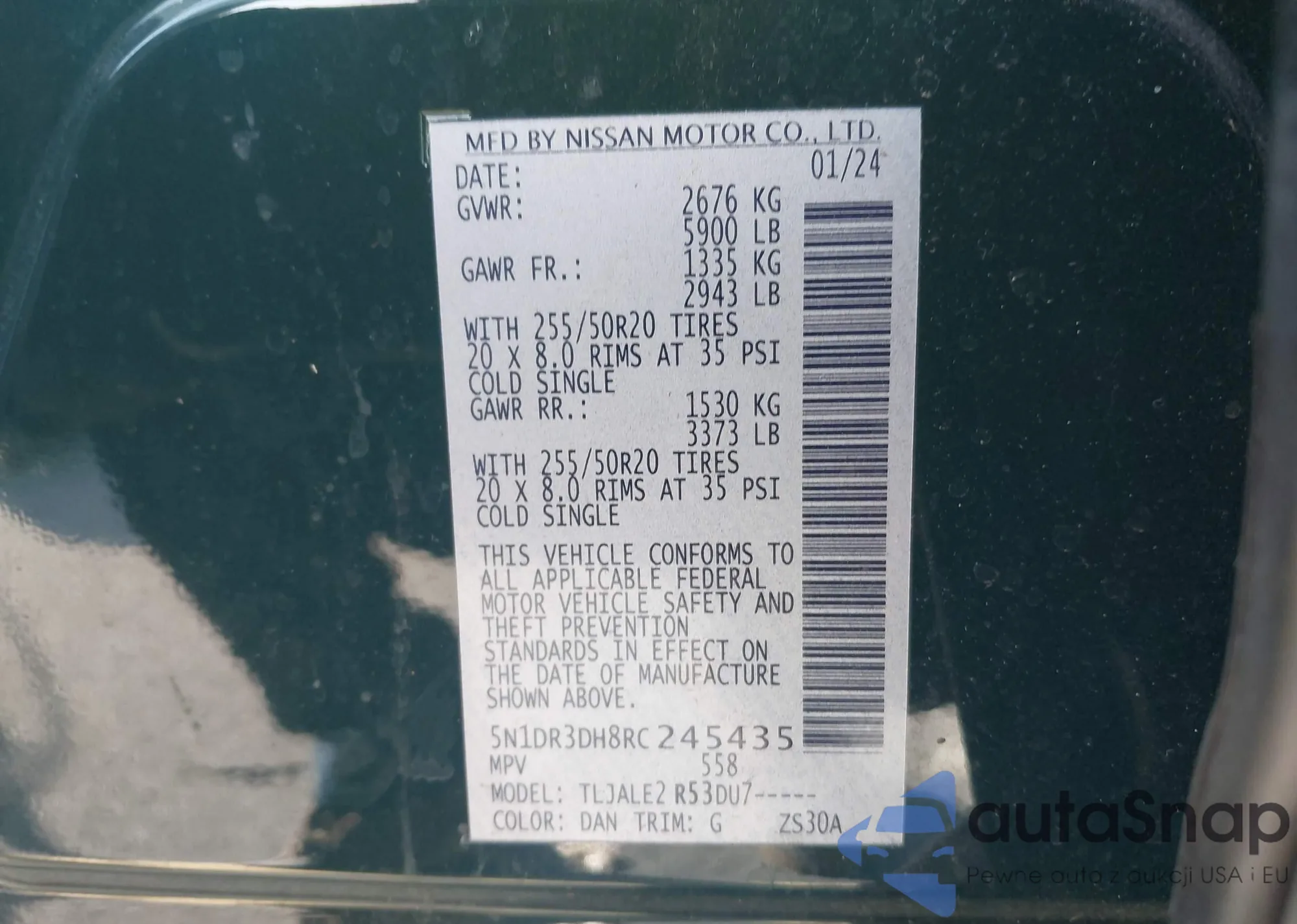 • VIN 5N1DR3DH8RC245435