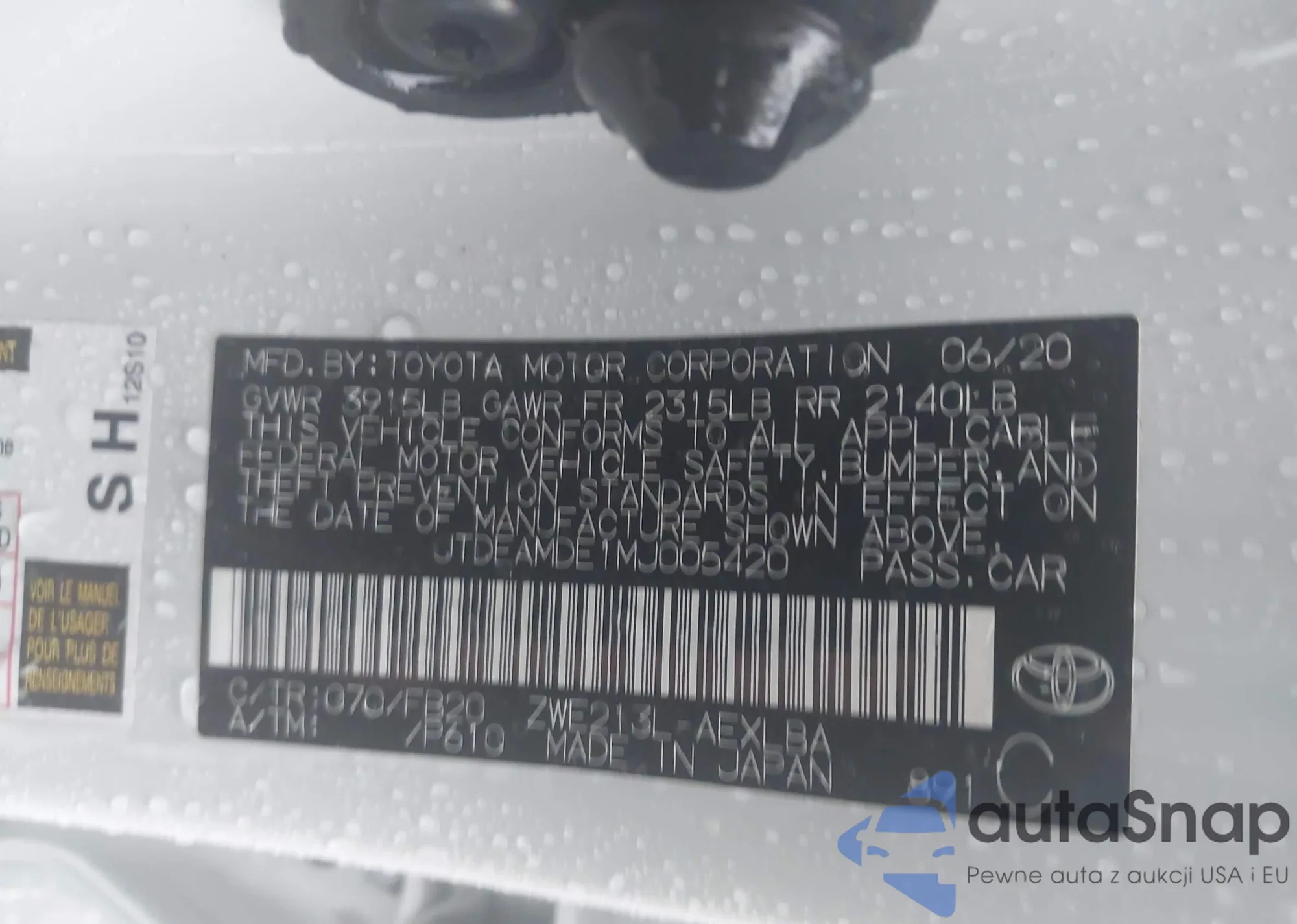 • VIN JTDEAMDE1MJ005420
