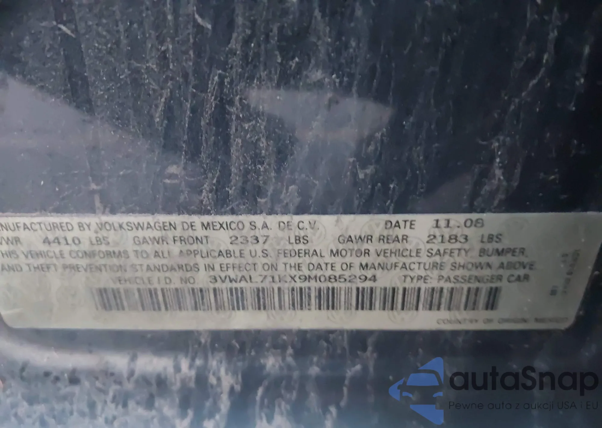 • VIN 3VWAL71KX9M085294