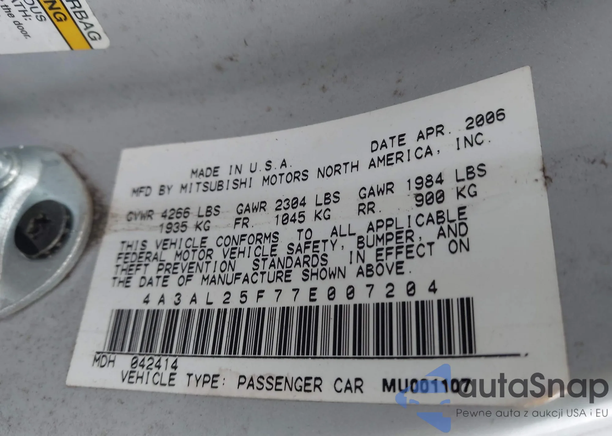 • VIN 4A3AL25F77E007204