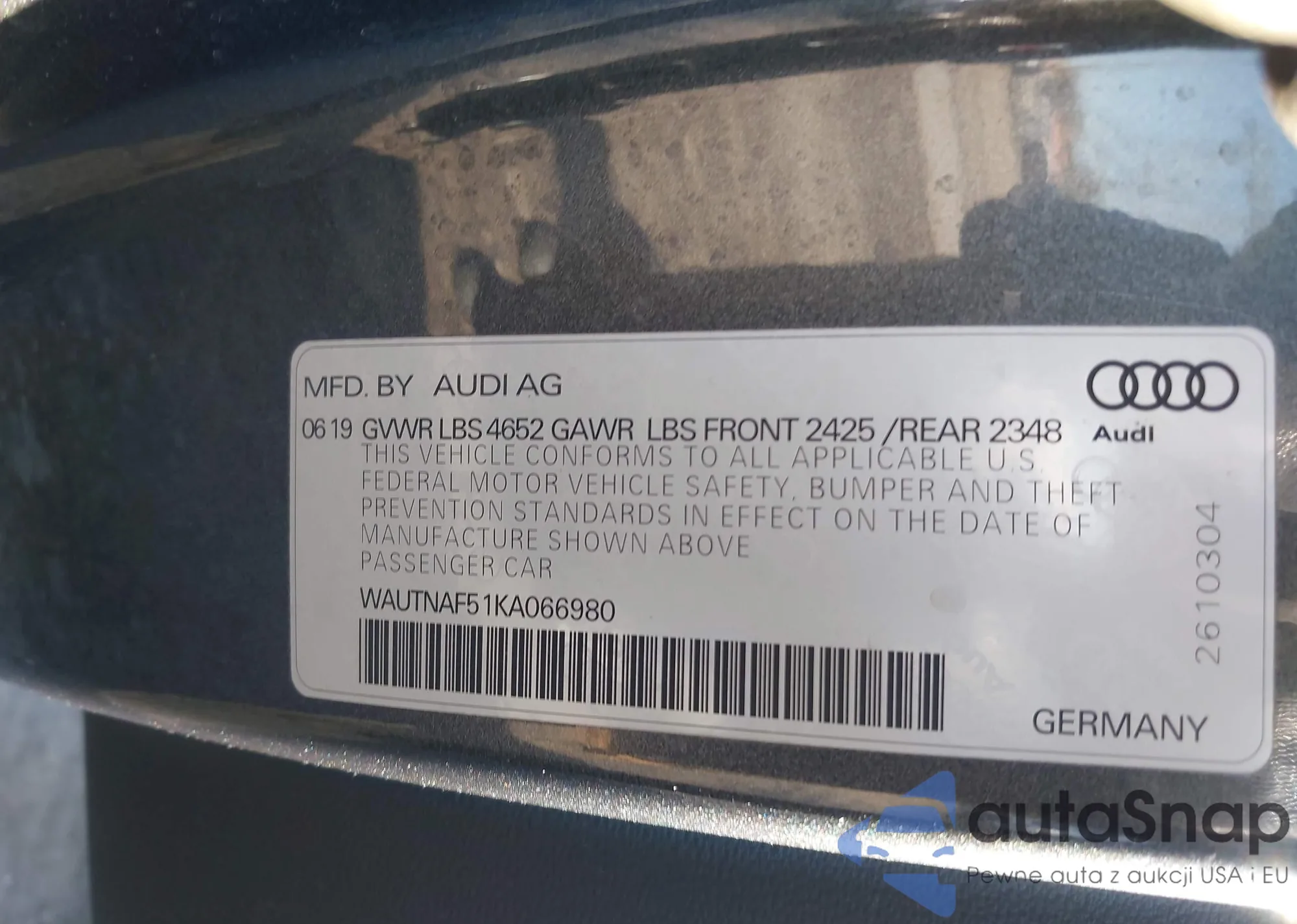 LOT: 44010382 VIN: WAUBA24B7WN181992