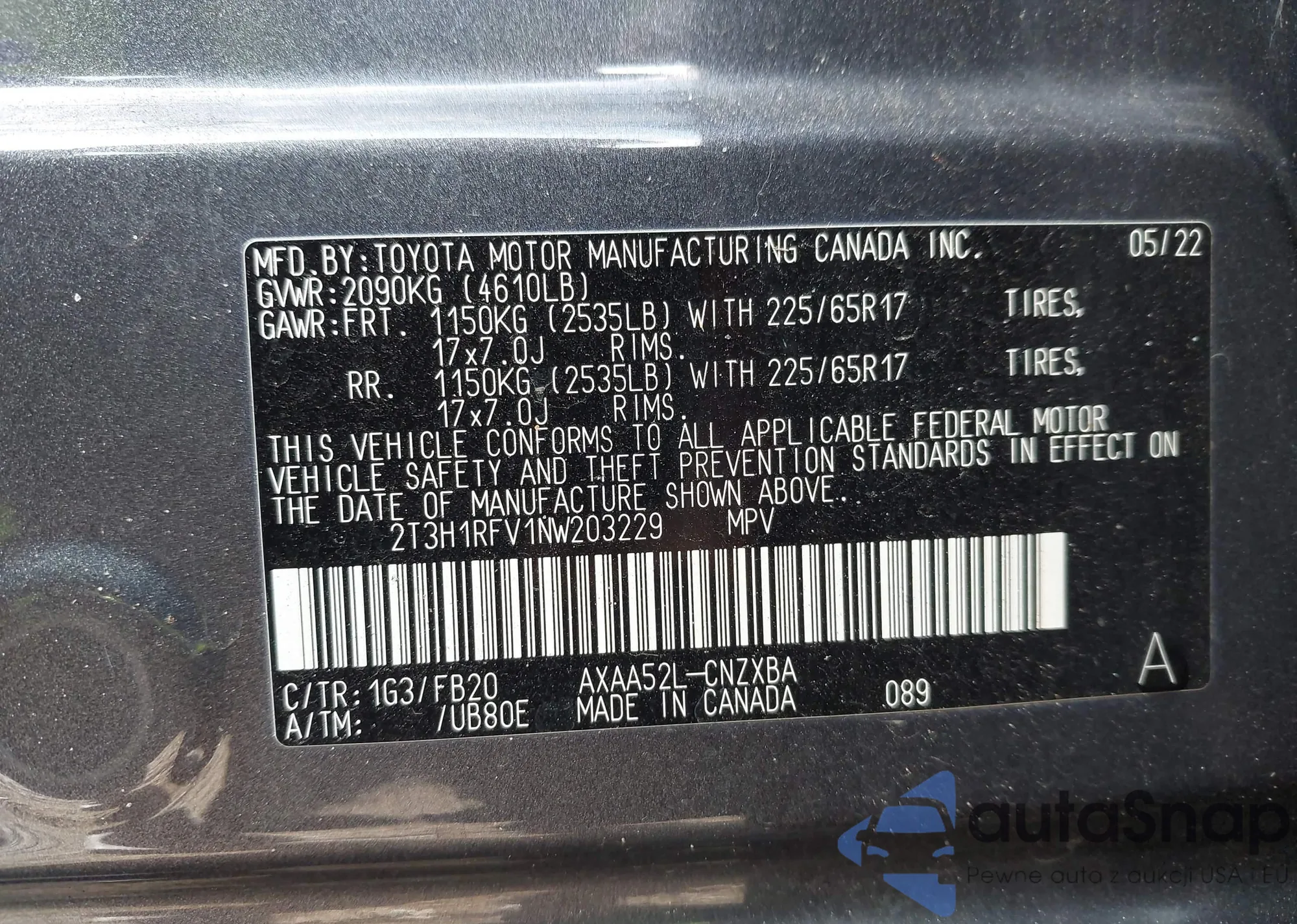 • VIN 2T3H1RFV1NW203229
