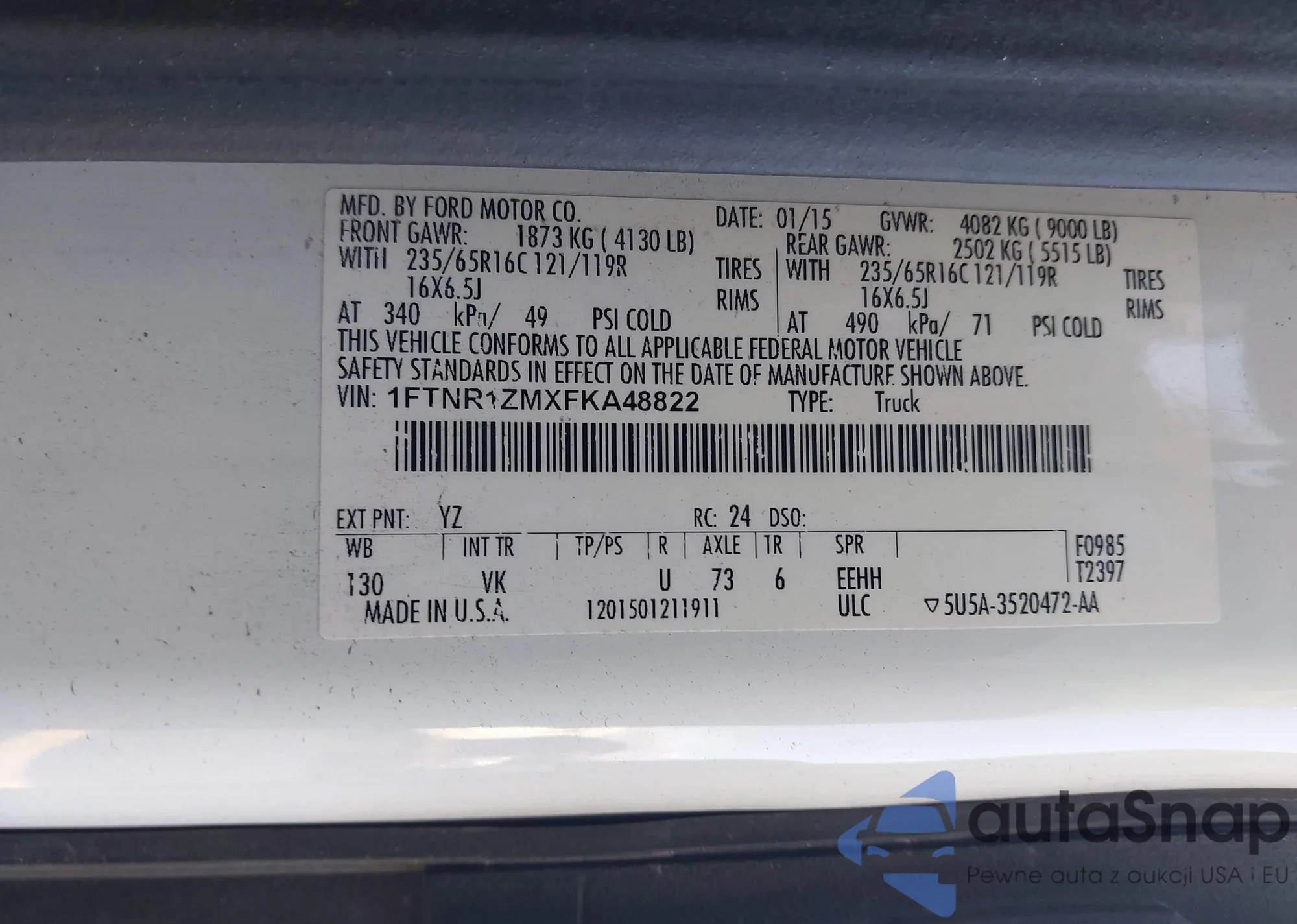 • VIN 1FTNR1ZMXFKA48822
