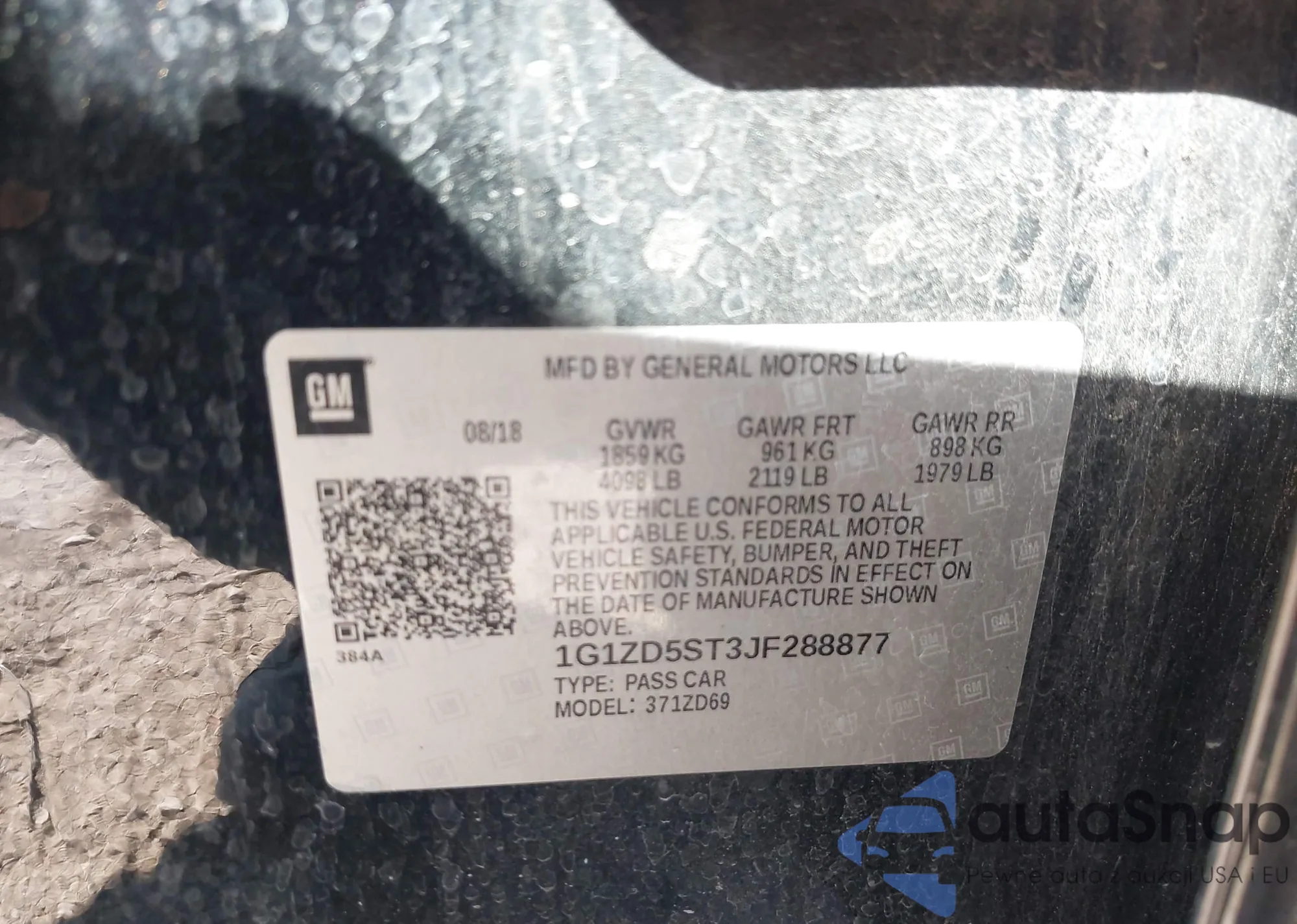 LOT: 43489511 VIN: 1G1ZT53836F248481