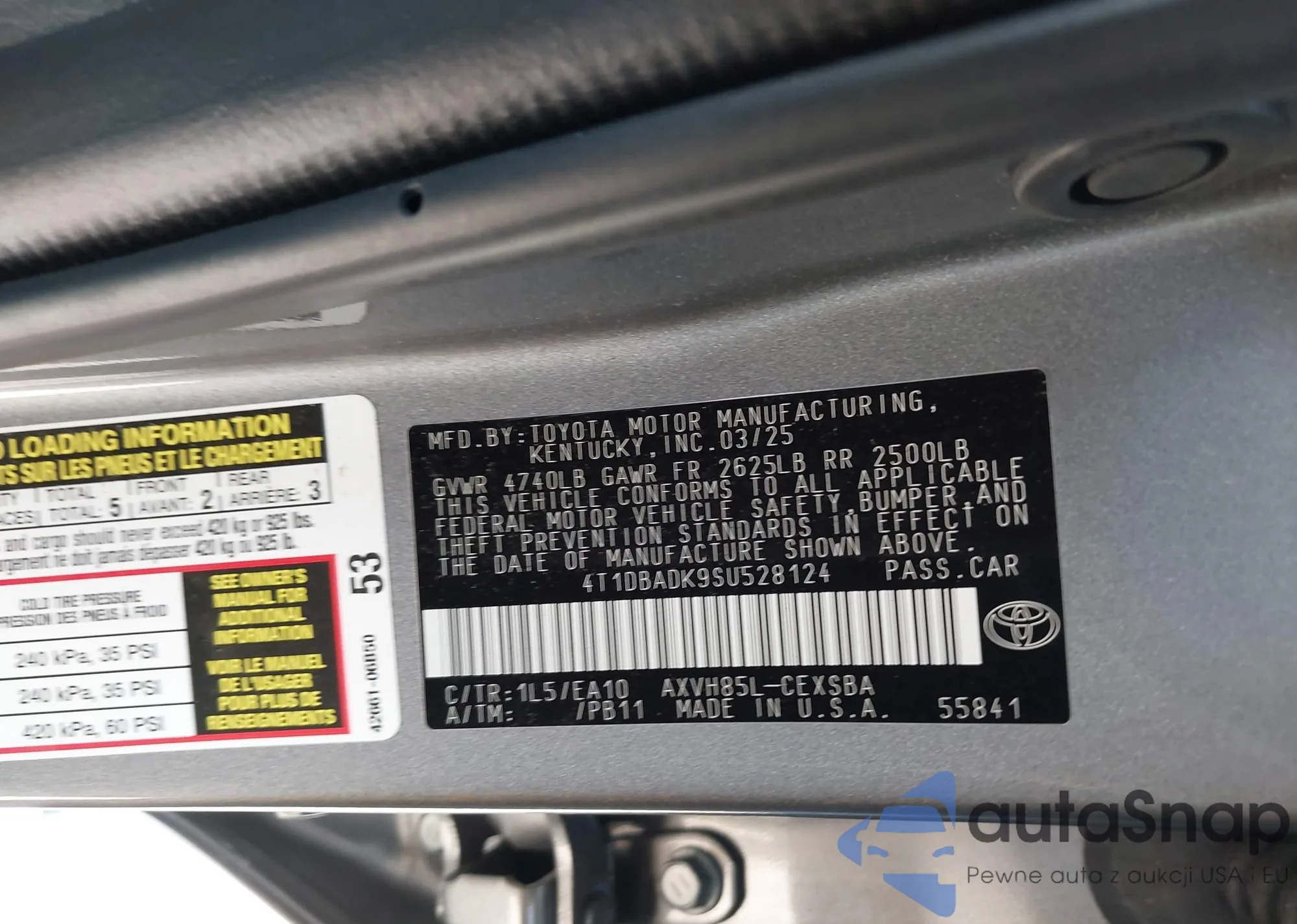 LOT: 43125839 VIN: 4T1DBADK9SU528124