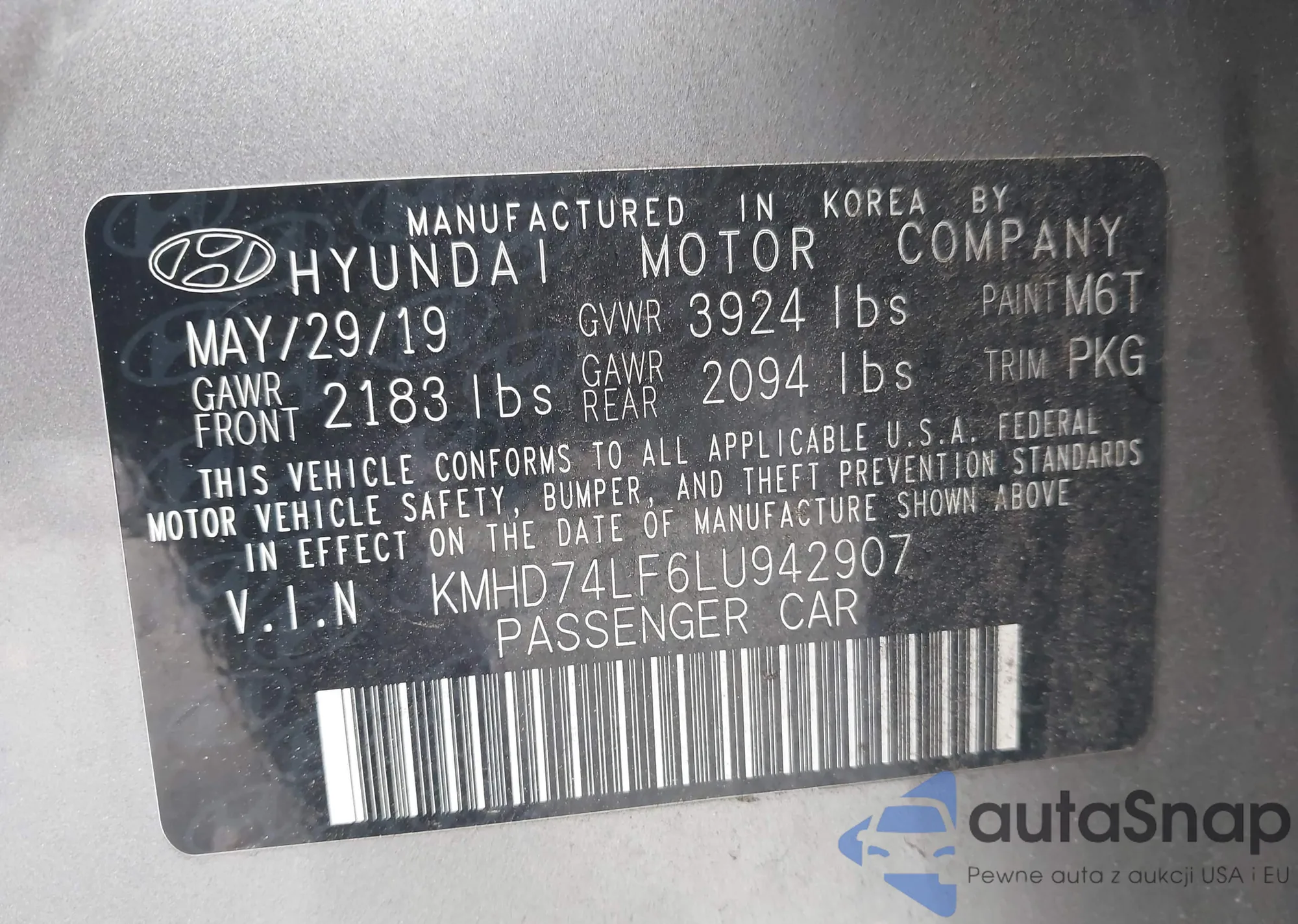 • VIN KMHD74LF6LU942907