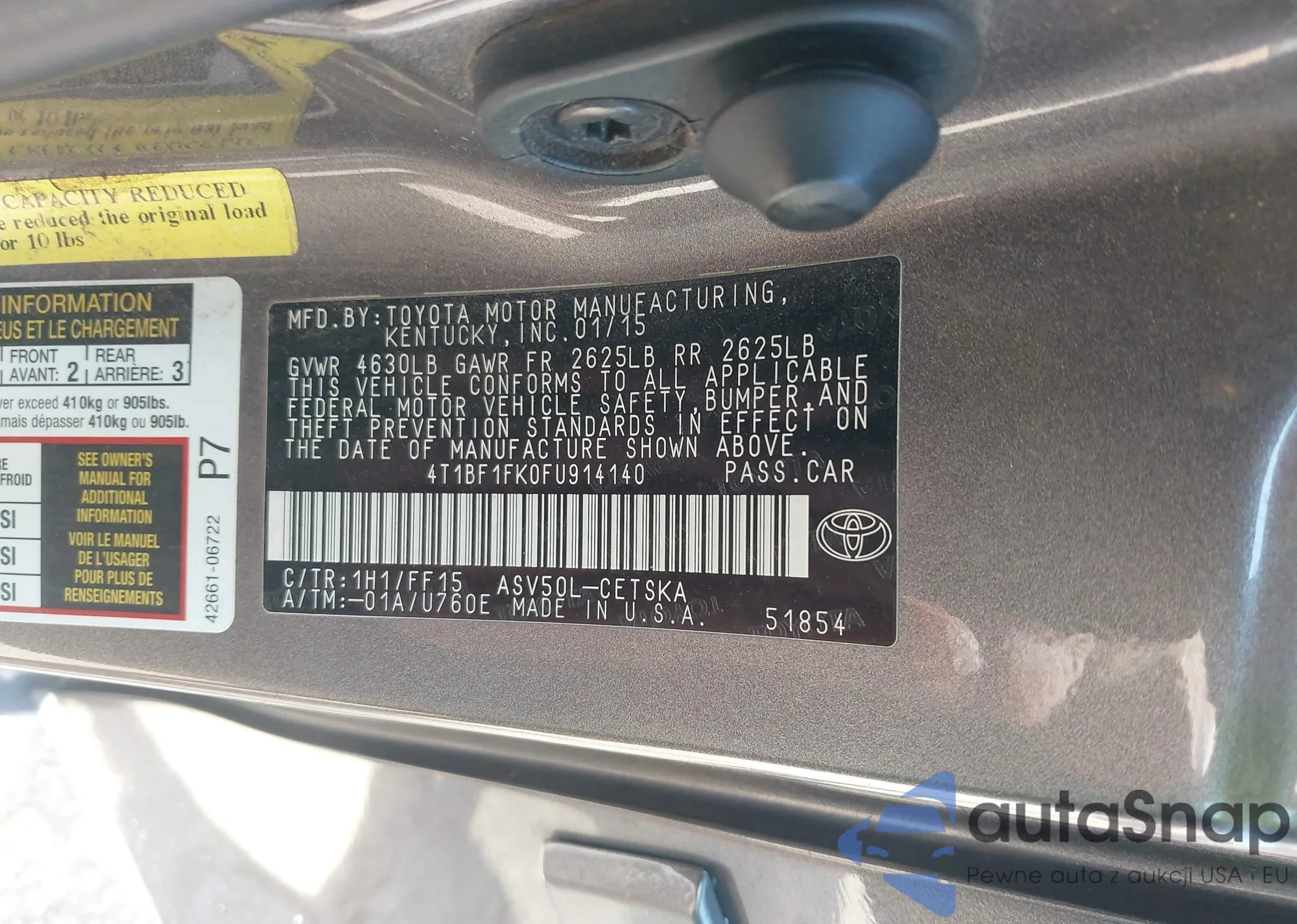 LOT: 43310764 VIN: 4T1BF1FK0FU914140