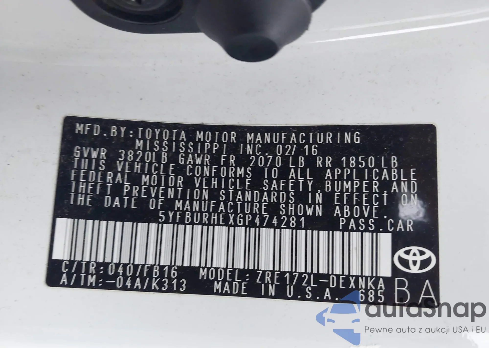 • VIN 4T1BF1FK0FU914140