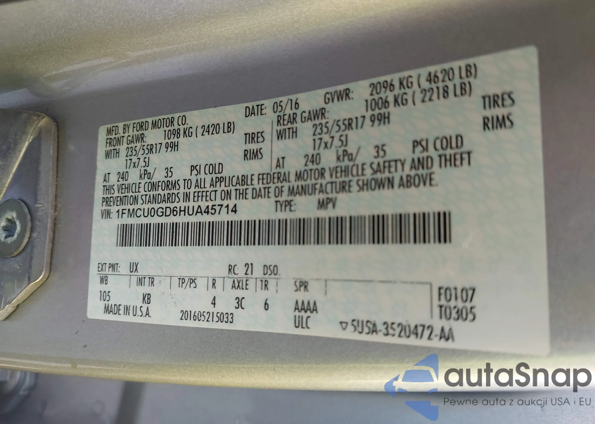 LOT: 43217717 VIN: 1FA6P8TH7H5282793