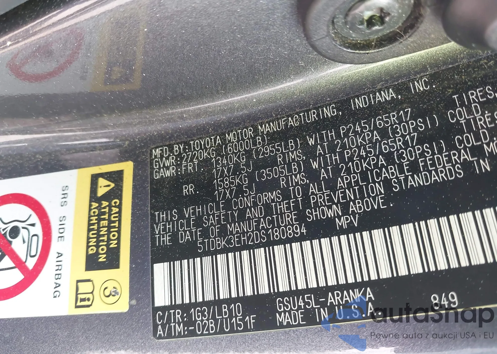 LOT: 43473669 VIN: 5TDBK3EH2DS180894