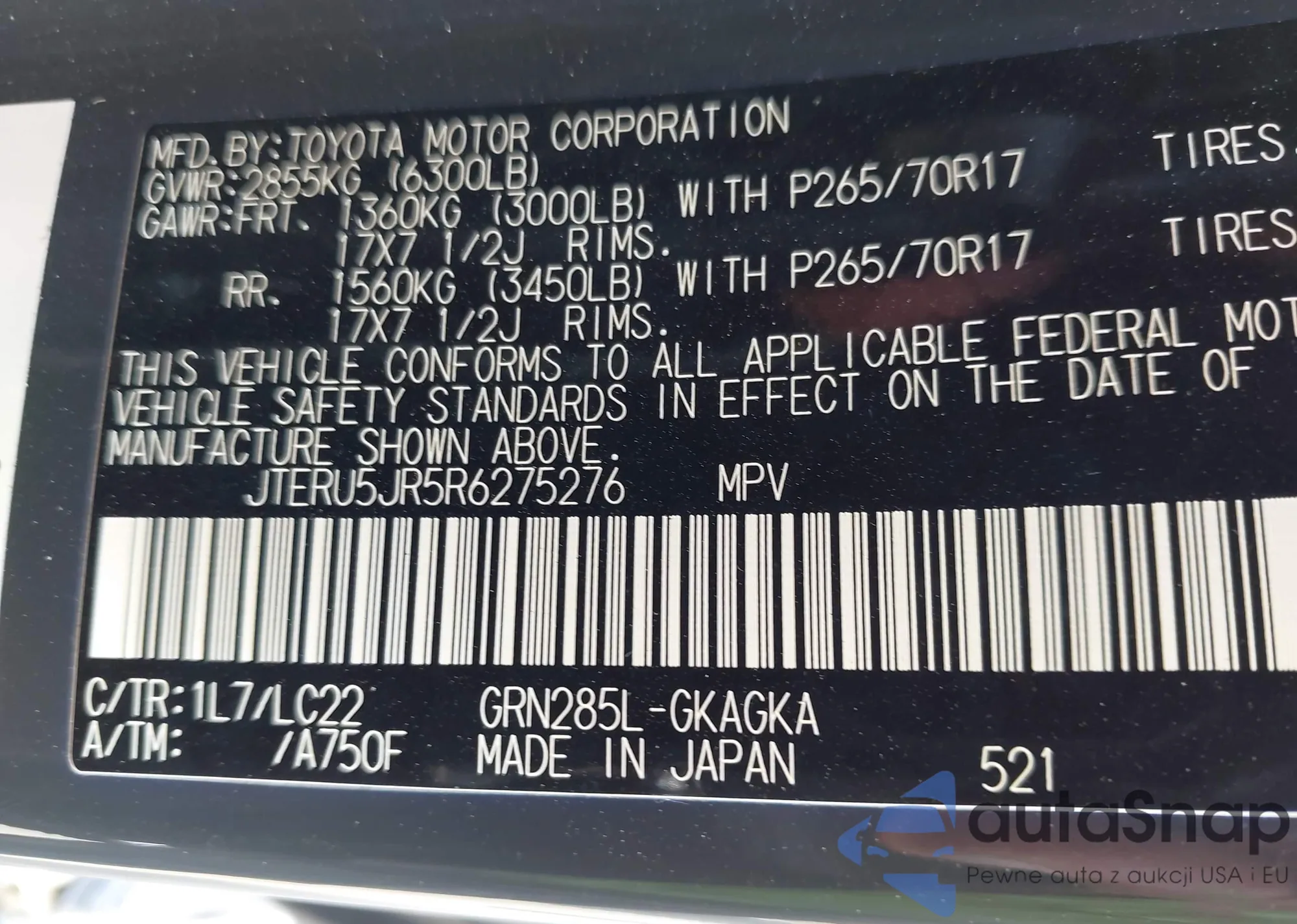 LOT: 43520224 VIN: JTERU5JR5R6275276