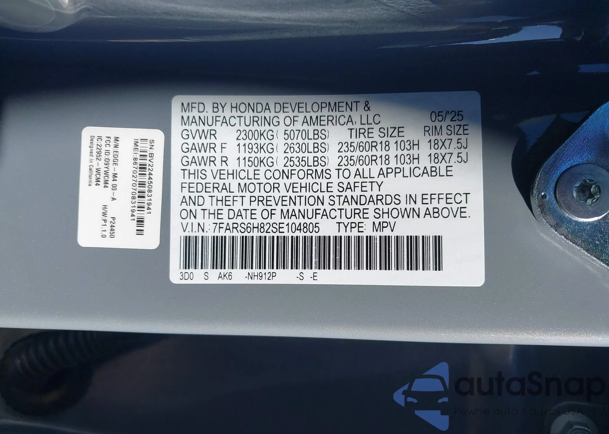 • VIN 7FARS6H82SE104805