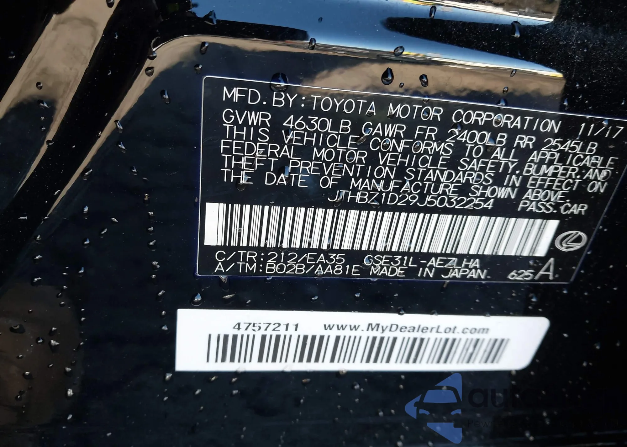• Lot number 43595425
