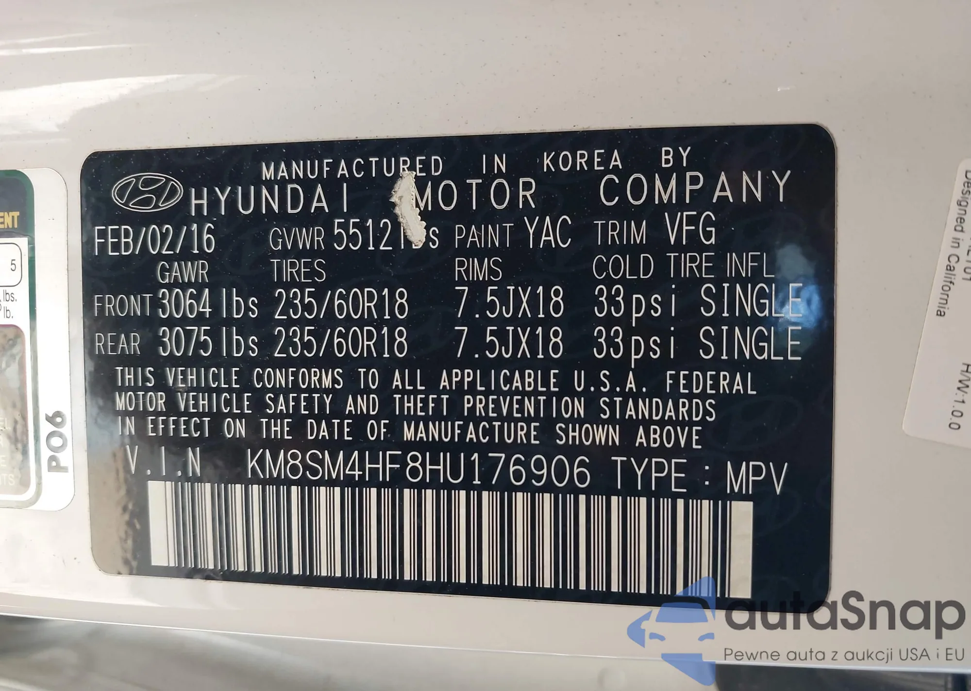 • VIN KM8SM4HF8HU176906