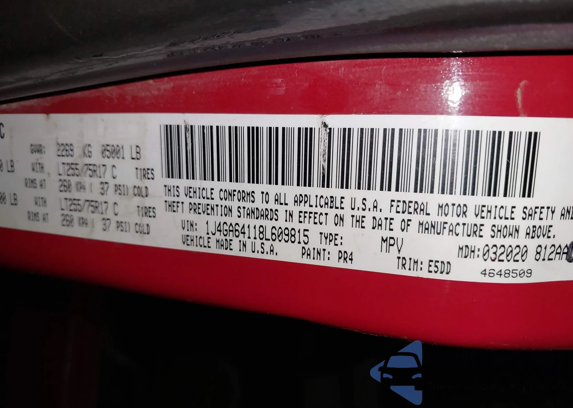 LOT: 43562605 VIN: 1J4GA64118L609815