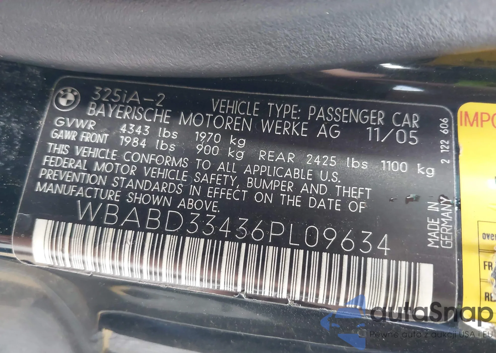 • VIN WBABD33436PL09634
