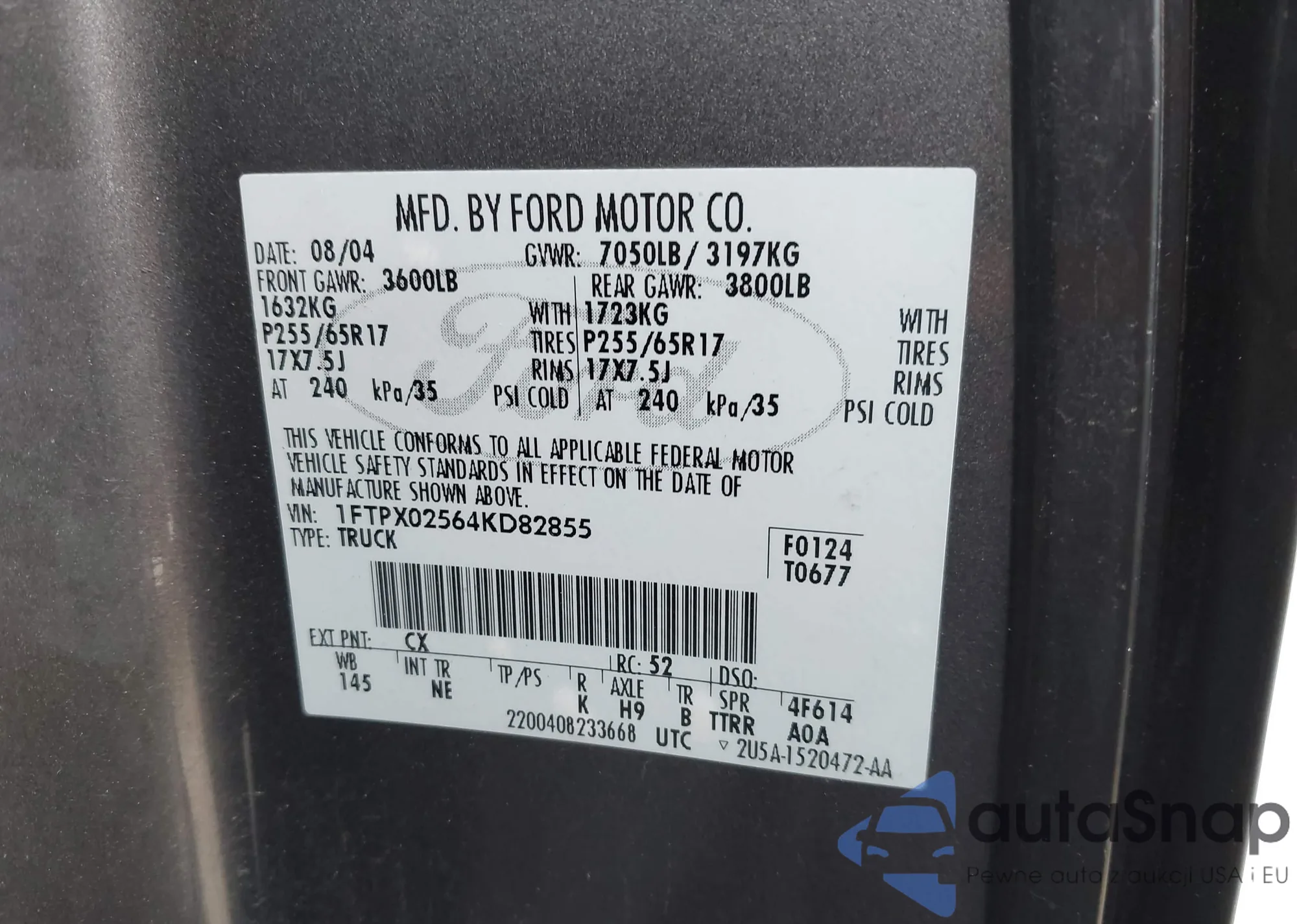 • VIN 1FTPX02564KD82855