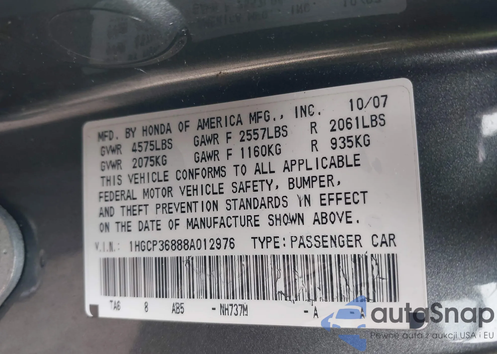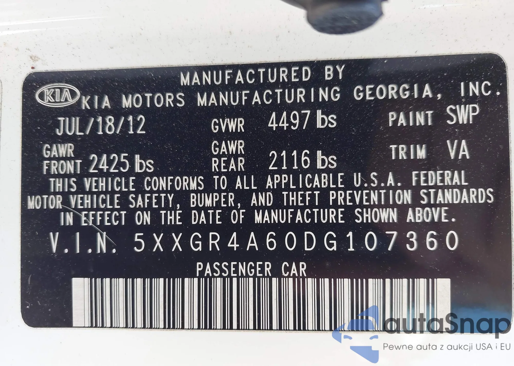• VIN 5XXGR4A60DG107360