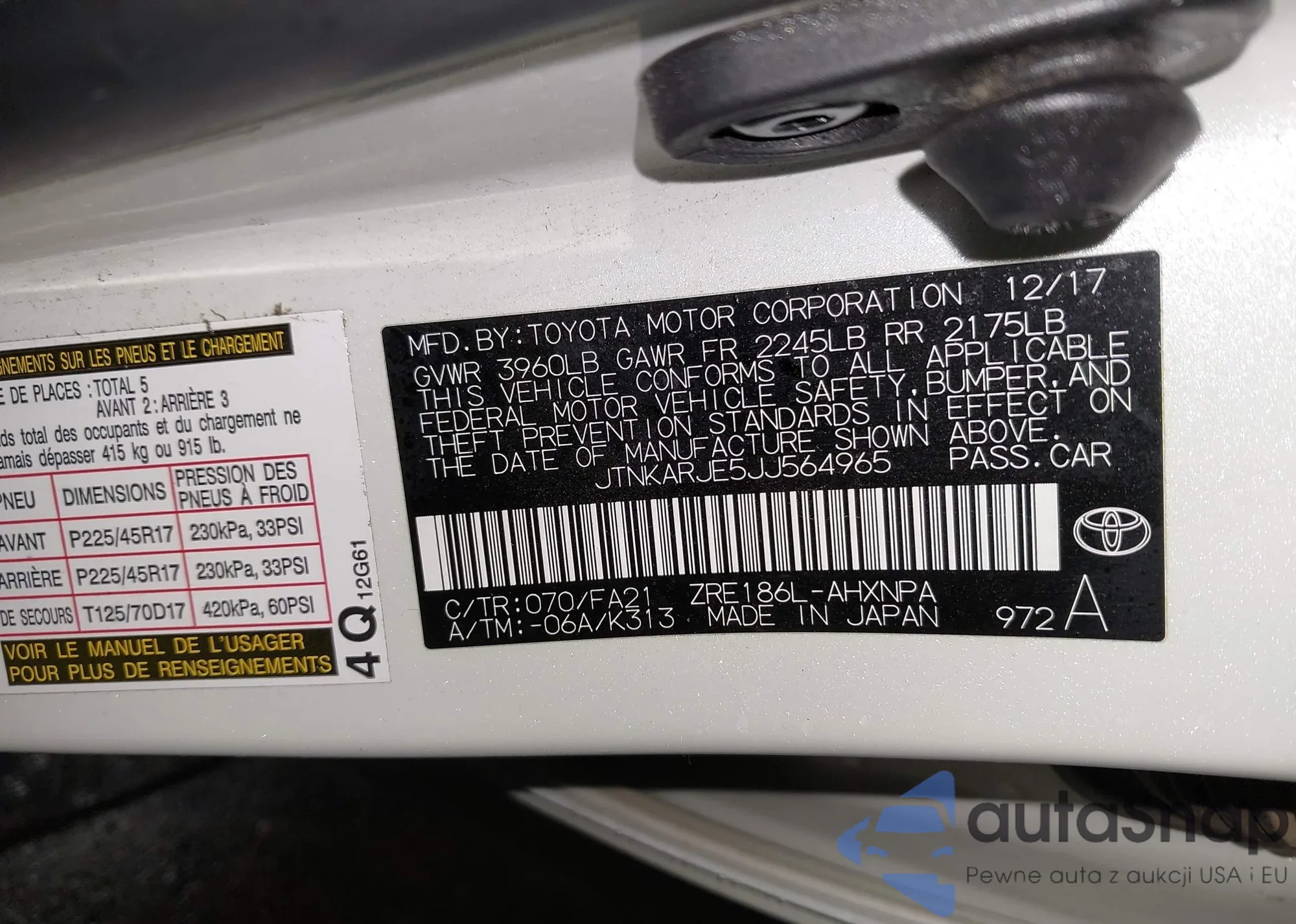 LOT: 43967973 VIN: JTDBT923X71178496